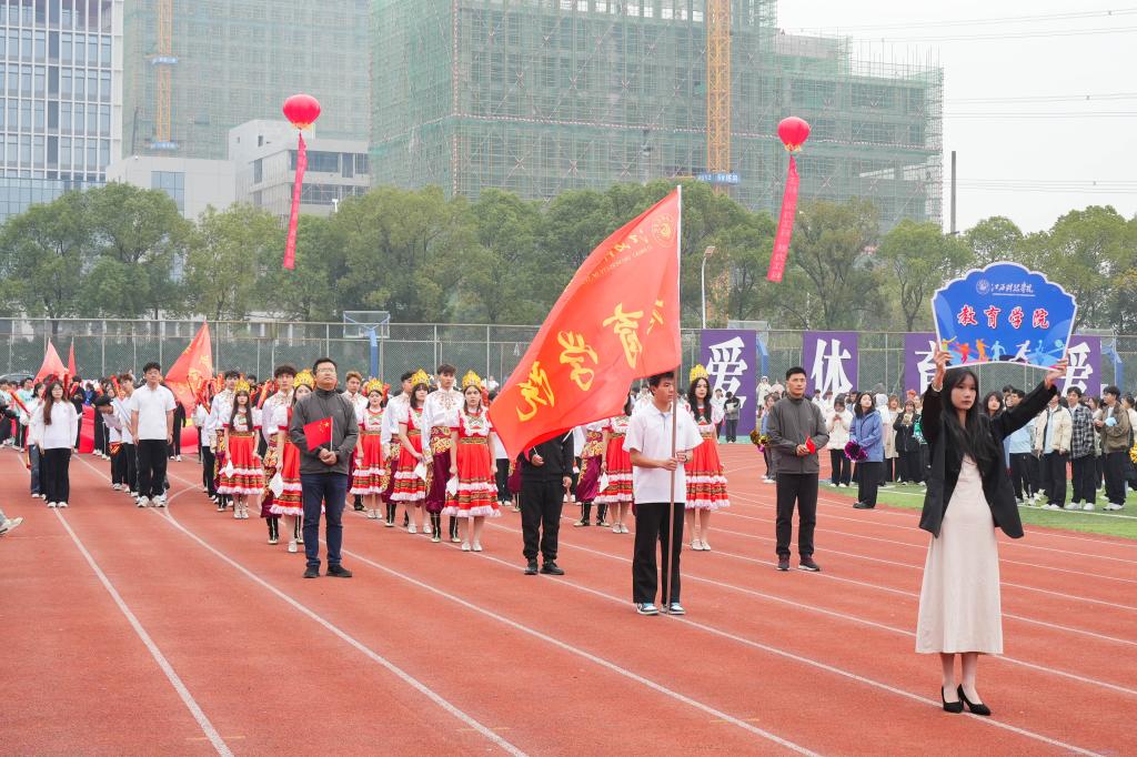 开幕式上,由城市建设学院、外国语学院、体育学院、教育学院、博雅国际学院、文化与传媒学院带来的大型团体表演《你要跳舞吗》《万象行·忆长安》《龙腾虎跃》《薪火相传》《民族awakening》《青春追梦》,为大家呈献了一场活力四射的视觉盛宴,洋溢着青春光彩,充分展示了积极向上、活力四射、奋勇拼搏的江科气质,极大的鼓舞了全校师生奋进新征程、建功新时代的信心和决心。节目表演后,伴随着激昂的《运动员进行曲》,裁判员代表队、教职工运动员代表队、各学院运动员代表队依次经过主席台,展示蓬勃活力的精神风貌。