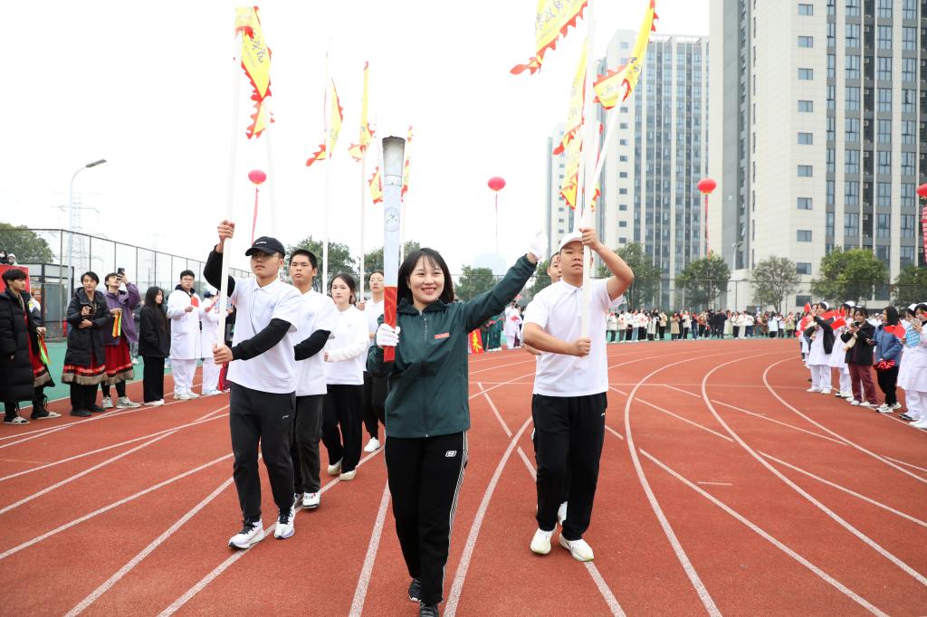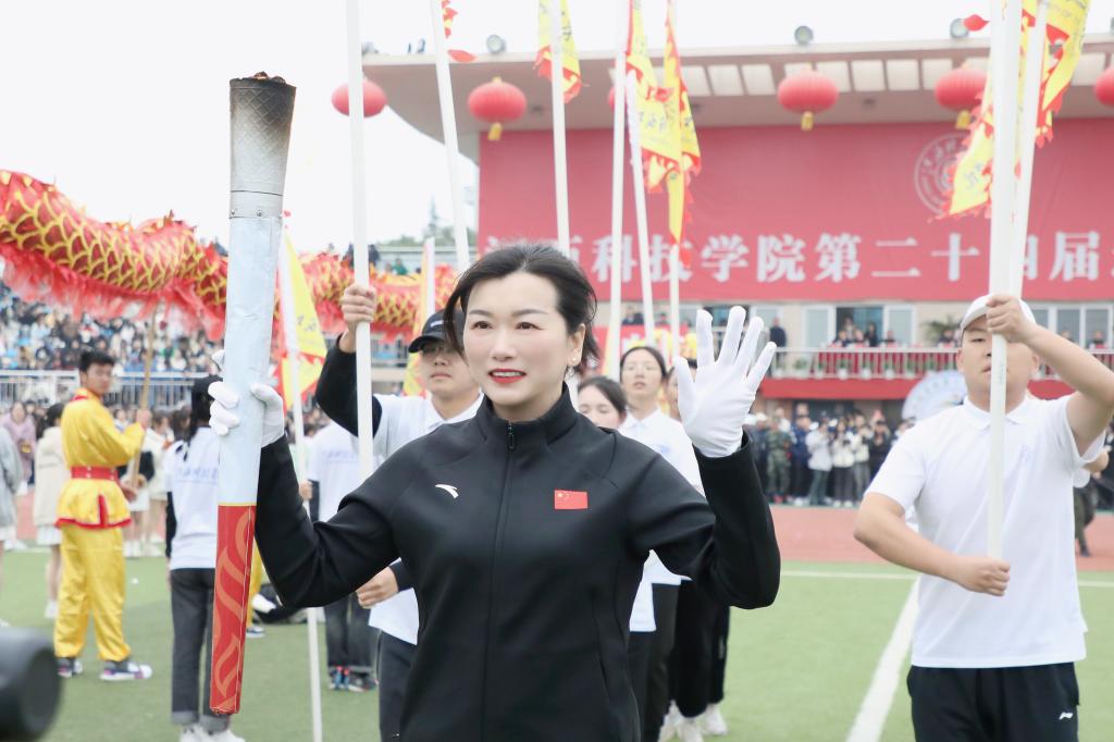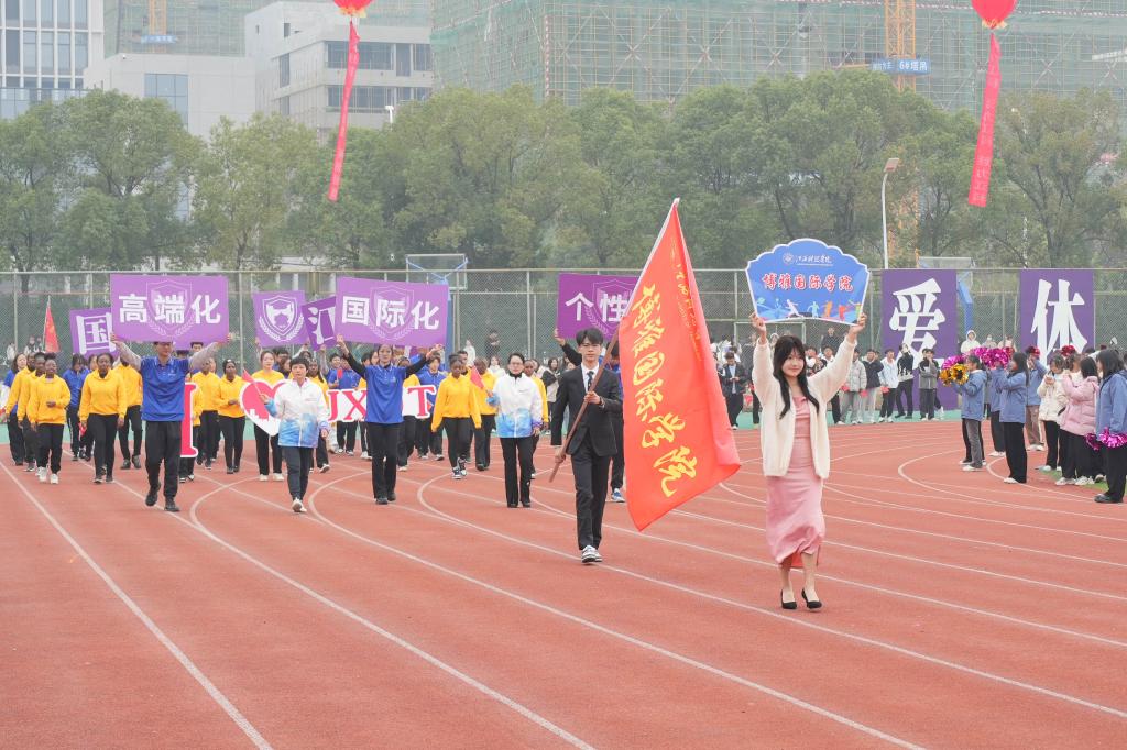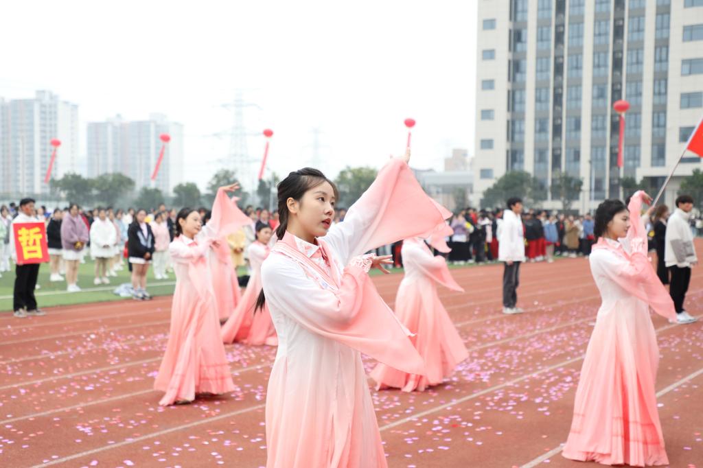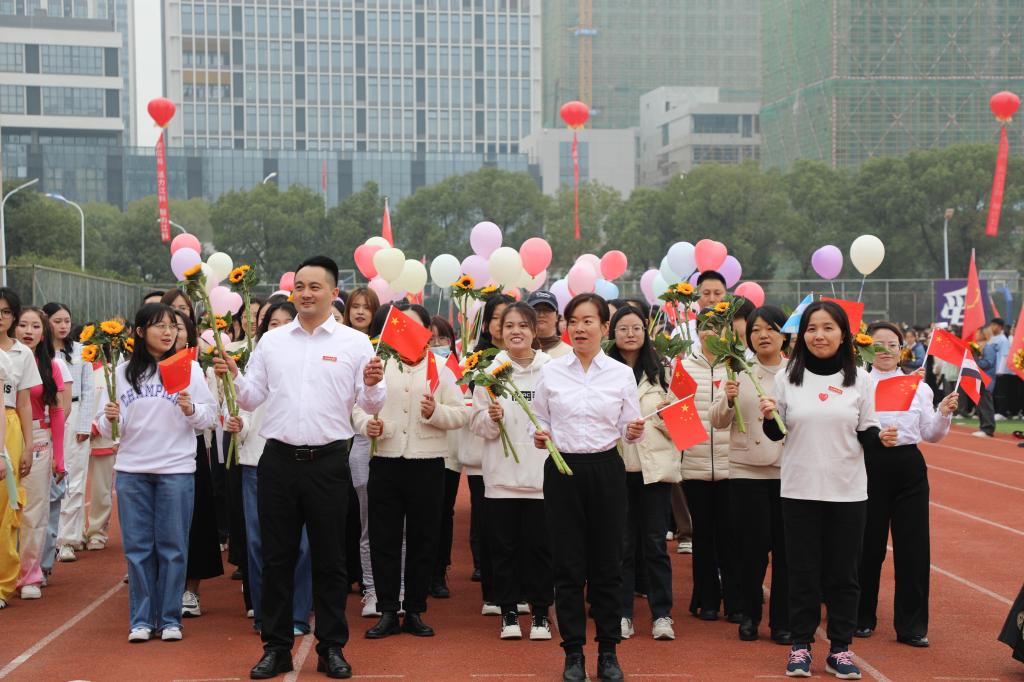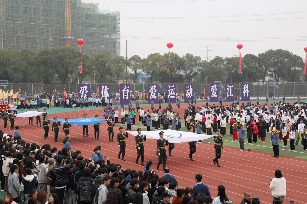 张海涛校长在开幕式致辞中代表学校董事会、党委、行政,代表本届运动会组委会向所有运动员、裁判员,以及关心、支持本届运动会并付出努力的师生志愿者和工作人员表示衷心感谢。她指出,体育承载着国家强盛、民族振兴的梦想,体育强则中国强,国运兴则体育兴。近年来,学校积极响应国家号召,不断强化体育育人工作,取得了丰硕成果,“让运动成为生活方式”已经深入江科人的内心。她强调,学校正全力推进“实力江科、活力江科、魅力江科”建设,一年一度的运动会是学校体育生活的重要载体,也是体育工作的一次大检阅,更是广大师生精神面貌和综合素质的一次集中展示。希望全体运动员弘扬“自强不息、求真务实”的精神,尊重对手、尊重裁判、尊重规则,展现精湛的运动技能,展示良好的精神风貌;希望广大裁判员坚守岗位,文明执法、严谨裁决,确保赛事的公平、公正;希望所有志愿者和工作人员同心同德、团结协作,为运动员提供安全文明的赛事服务。最后,她祝愿全体运动健儿在赛场上收获快乐、友谊与成绩,展现积极向上、活力四射、奋勇拼搏的江科气质与“爱体育、爱运动、爱江科”的生活态度和追求,不断超越自我、突破极限、释放无限能量。