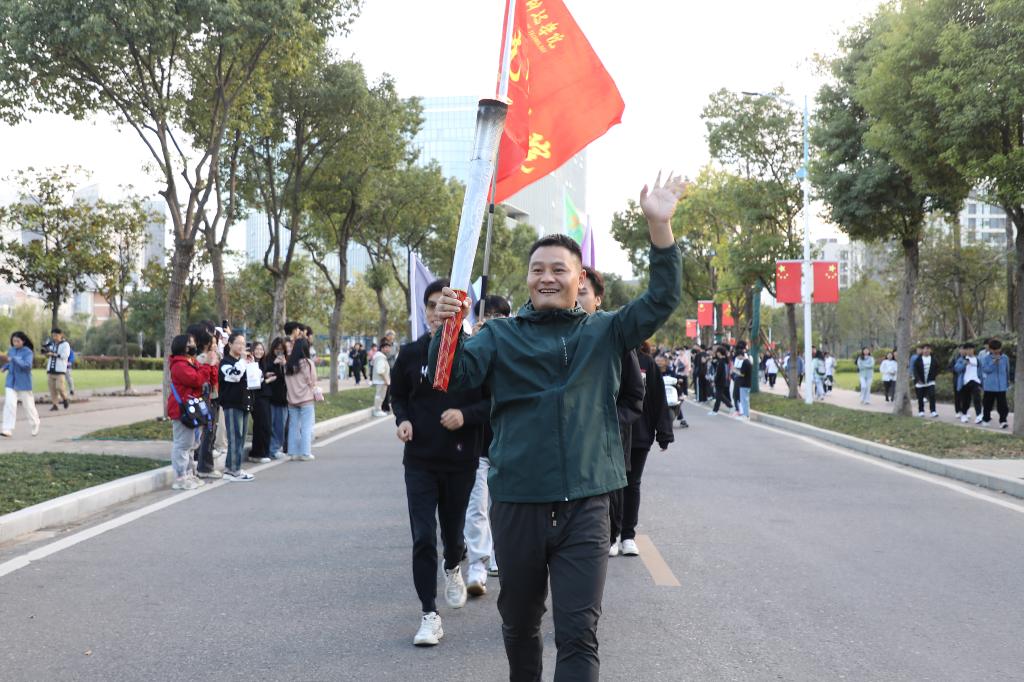 在现场参加火炬传递启动仪式的师生见证下,第一棒火炬手、校党委副书记、副校长闵桂林手持火炬,挥手致意后迈出坚定的步伐,校园火炬传递正式开始。火炬传递从临水广场出发,沿途经综合运动馆、国旗台、湖畔艺术中心、大学生思想政治教育基地等学校标志性地点和校园主干道。14名火炬手高举火炬,满怀热情地一棒接一棒,环校奔跑。传递路线上的师生为火炬手欢呼、鼓掌。随着最后一棒火炬手手持火炬跑向终点奥林匹克中心,现场的气氛达到高潮。至此,本届运动会校园火炬传递活动正式结束。15日上午,校运圣火将在开幕式上点燃。