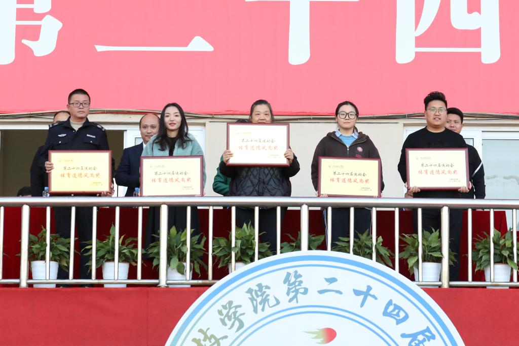 人工智能学院、教育学院、城市建设学院、财经学院分获学生组团体总分前四名,管理学院分会、机关六分会、教育学院分会、信息工程学院分会、文化与传媒学院分会、人工智能学院分会、城市建设学院分会、机关四分会分获教职工组团体总分前八名,信息工程学院、文化与传媒学院、医学院、管理学院、外国语学院荣获学生组优秀组织奖,医学院分会、音乐舞蹈学院分会、集团代表队、财经学院分会、马克思主义学院分会、机关三分会荣获教职工组优秀组织奖,艺术设计学院、音乐舞蹈学院、博雅国际学院荣获学生组体育道德风尚奖,艺术设计学院分会、机关二分会、机关七分会、外国语学院分会、机关五分会荣获教职工组体育道德风尚奖,体育学院荣获特别贡献奖,体育学院分会、医学院分会、城市建设学院分会分获教职工拔河比赛前三名,财经学院分会、信息工程学院分会、机关六分会获得教职工拔河比赛优胜奖,刘寒等30人荣获“优秀裁判员”称号,吴依婷等100人荣获“优秀工作人员”称号,陈文君等30人荣获“优秀宣传员”称号。