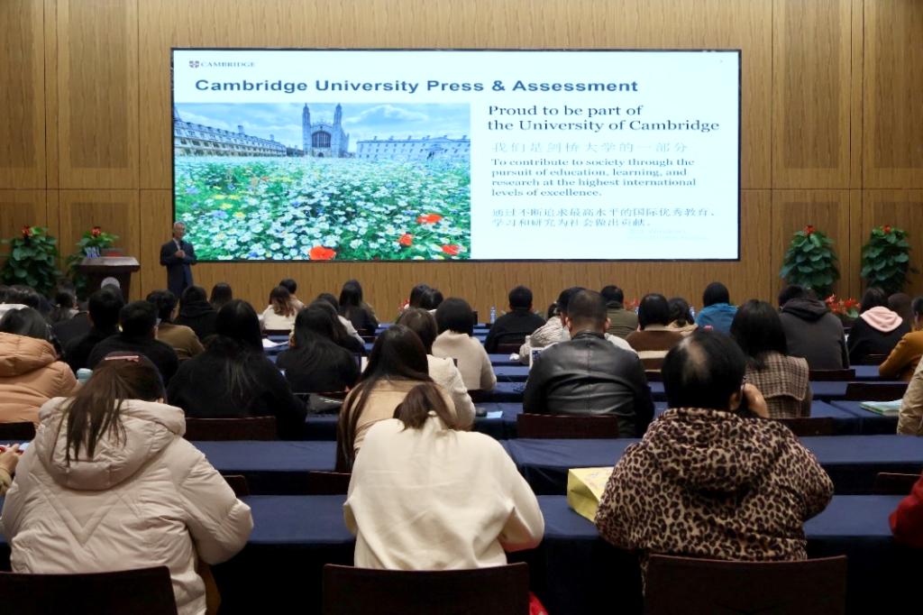 李文凯总监以“国际合作办学的语言教学与质量保障”为主题,从剑桥英语考试机构、中国英语语言教学与测评事业发展、雅思与剑桥领思成绩转换、中外合作办学外语教学的挑战等方面进行介绍。同时,他对剑桥多样化的测评与认证、剑桥领思在高教广泛应用、运用案例分享教学计划、课程设置和课程大纲实施过程等作了交流分享。