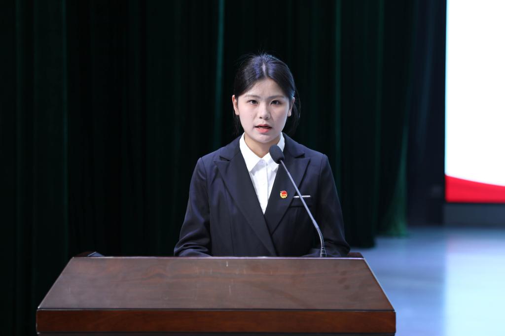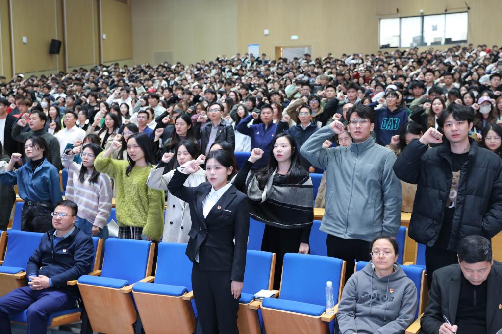 开班典礼上,全体师生齐唱《国际歌》,人工智能学院陈思媛同学代表学员发言,管理学院周亚曼同学带领现场全体学员宣誓。