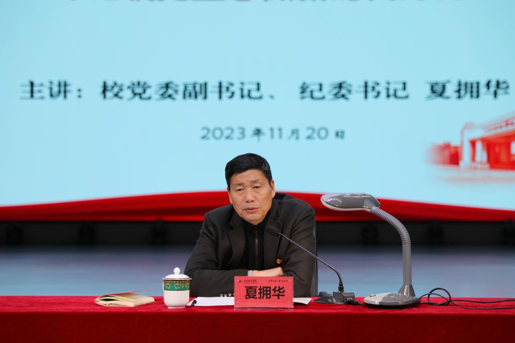 夏拥华副书记从“深刻认识中国共产党的光辉历程”“牢记习近平总书记嘱托立志做新时代好青年”“坚定不移向党中央看齐”三个层面系统展开党课内容。他指出,习近平新时代中国特色社会主义思想是当代中国马克思主义、二十一世纪马克思主义,是中华文化和中国精神的时代精华,是党和人民实践经验和集体智慧的结晶,是中国特色社会主义理论体系的重要组成部分,是全党全国人民为实现中华民族伟大复兴而奋斗的行动指南,必须长期坚持并不断发展。全面建设社会主义现代化国家、全面推进中华民族伟大复兴的征程在前,必须把这一思想贯彻落实到我们学习、生活和工作各方面全过程。新时代中国青年生逢盛世定不负盛世,要坚定不移听党话、跟党走,立志做有理想、敢担当、能吃苦、肯奋斗的新时代好青年,在祖国的万里长空放飞青春梦想,以昂扬奋进的姿态书写下无愧于时代的壮丽篇章,让青春在全面建设社会主义现代化国家的火热实践中绽放绚丽之花。最后,夏拥华书记勉励学员们树立远大理想,坚持勤学善思,严守政治规矩向党中央看齐,早日加入中国共产党。