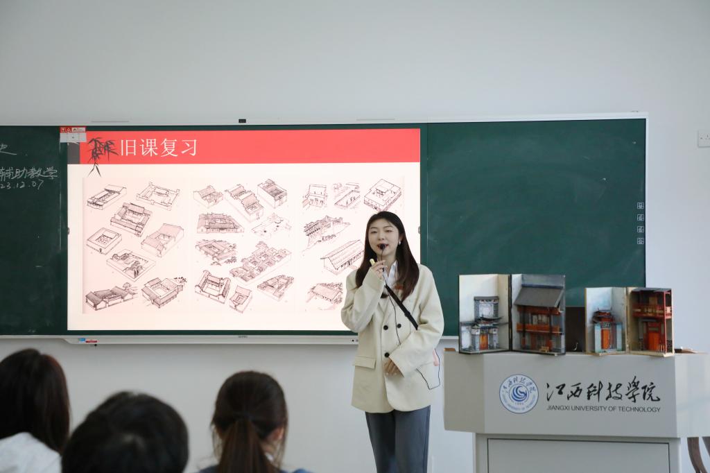 在J4-211,喻恺董事长与21本环境设计2班的同学们一起听取陈慧敏老师讲授的《中外建筑史》课程。课堂上,陈慧敏老师详细讲解了“近代中国建筑史发展回顾”“迈进新中国时期的优秀建筑鉴赏”“繁花似锦的21世纪中国新建筑”等内容。喻恺董事长认真听课,详细做好听课记录,仔细观察学生上课状态,并对教学过程、教学方法、教学效果和教学设施等情况全面了解。