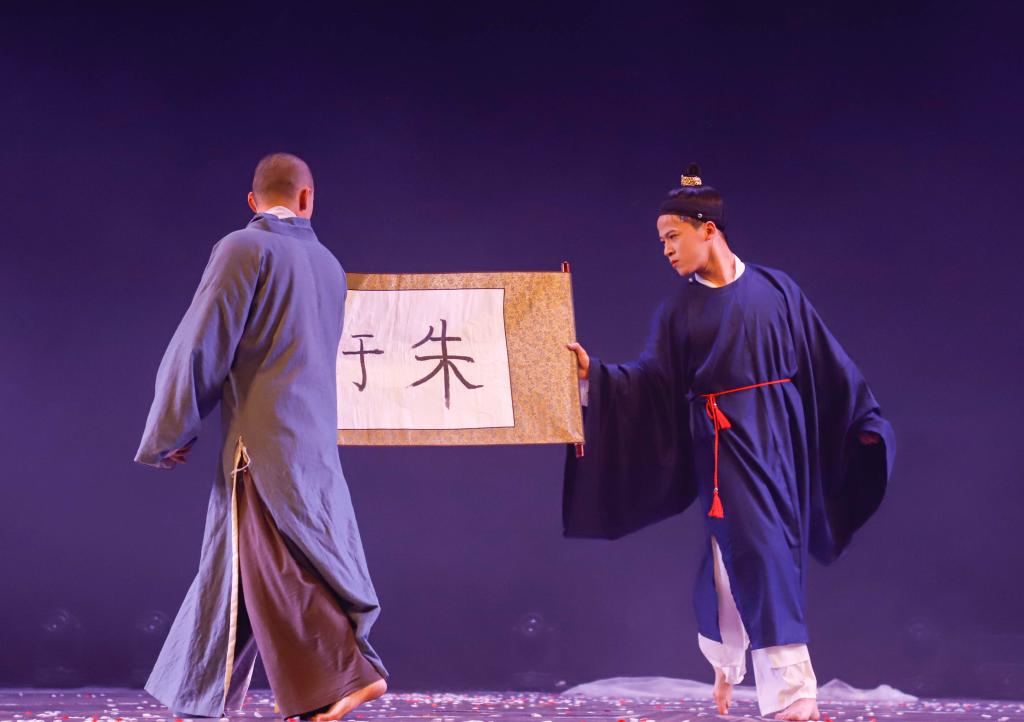 《纡朱纾梦》取材于南昌明末清初画家八大山人朱耷的艺术理念及生命历程,通过《三昧》《浮沉子》《晓生梦》《槐安枕》《寤歌堂》《八大》等六幕,集中展现了八大山人从自观、自问到自救,并最终获得自信与自由的生命历程,歌颂了其不屈的精神气节,以及在人生大苦难中获得的大彻悟。全剧采用倒序以及虚实结合的手法,将书法气韵、人文情怀融入整个舞剧的编创,兼顾抒情性和叙事性相统一。通过梦境,旁白以及戏中戏等综合手法,体现主人公孤傲遗世的风骨,带领观众走入这位历史人物的同时,也能领略和感受江西人文深厚的底蕴。整个舞剧在队形与肢体动作的编排上采用拟人拟物的手法、在舞美灯光等设计上紧扣主题、在服装造型等设计上紧扣相对应的人物形象以及朝代特征,旨在给观众较好的视觉体验与审美意趣,呈现出历史人物的真实生活背景。