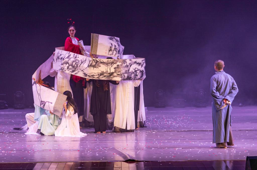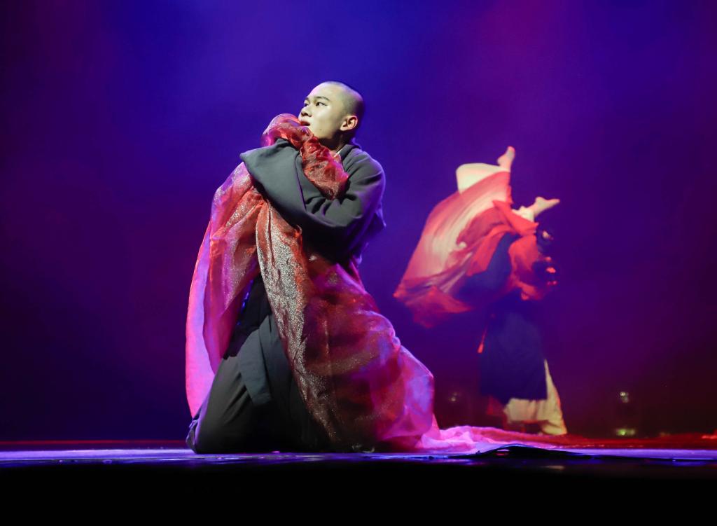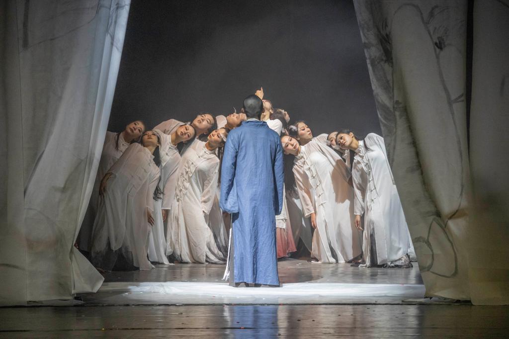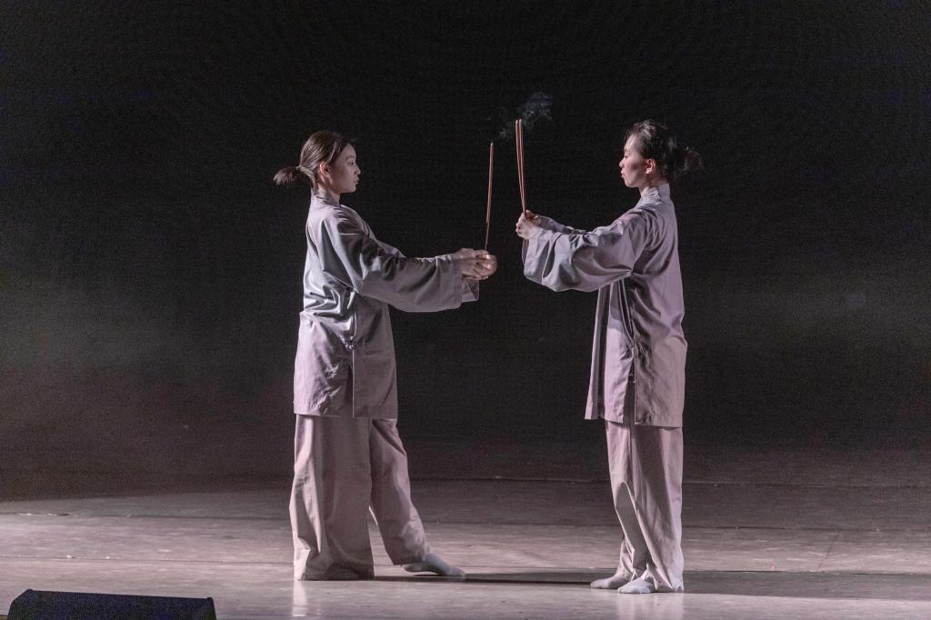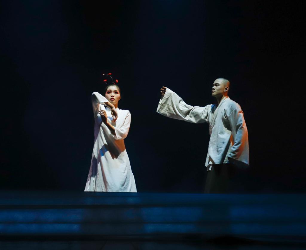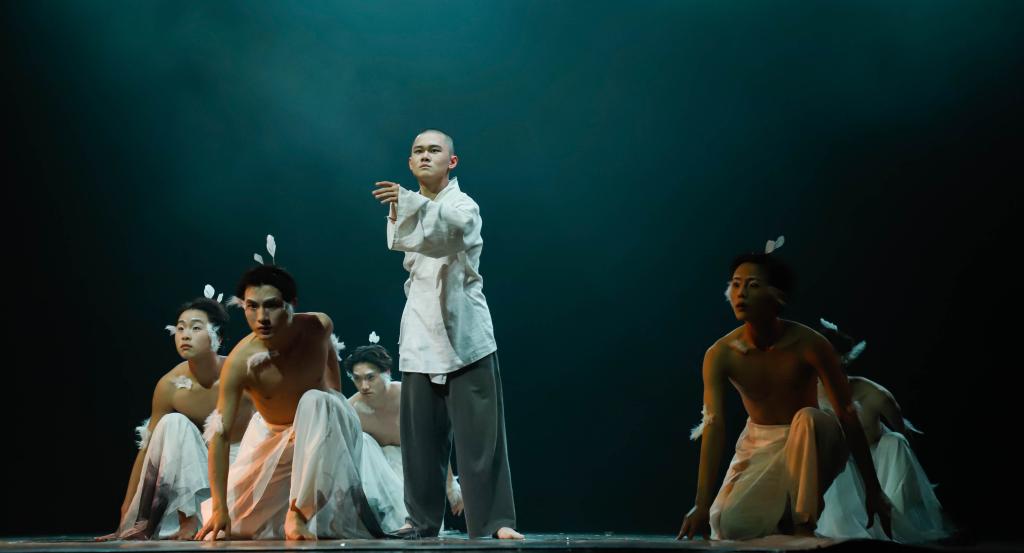 “该舞剧从前期主题选材、田野采风、剧本撰写,到中期排练厅里的结构编排、舞段创作、道具磨合,再到后期舞美设计、剧场合成耗时近两年的时间,所有环节均由师生共同参与,这让我学到了很多,进步很大,是我本科学习阶段的一次完美谢幕”饰演朱耷的冯志毅说道。“该剧以八大山人为题材进行艺术创作,通过现代抽象写意的东方美学,体现舞蹈人对传统文化的寻根意识,让观众深刻领悟传统文化的价值,明白自我的文化身份,以深沉、持久的文化底气和文化自信向传统文化之源回归。”指导老师蕾萱介绍说。