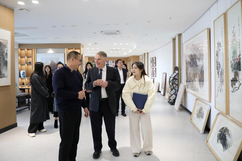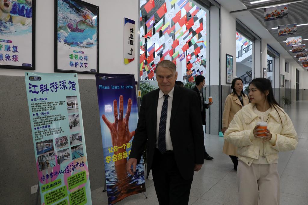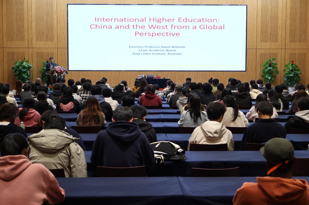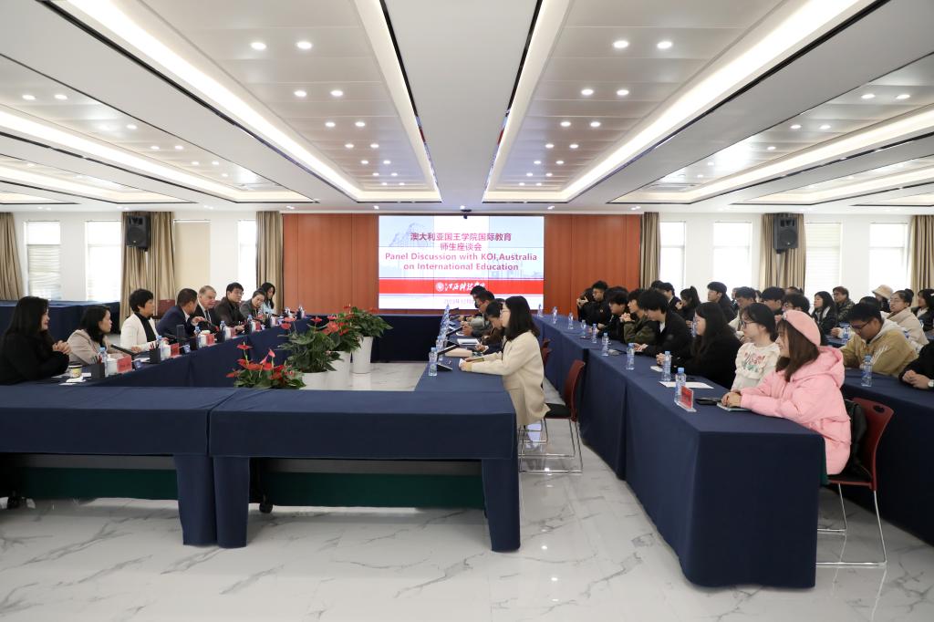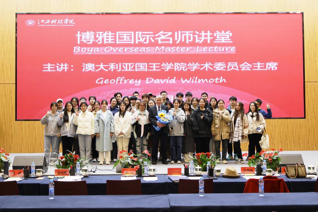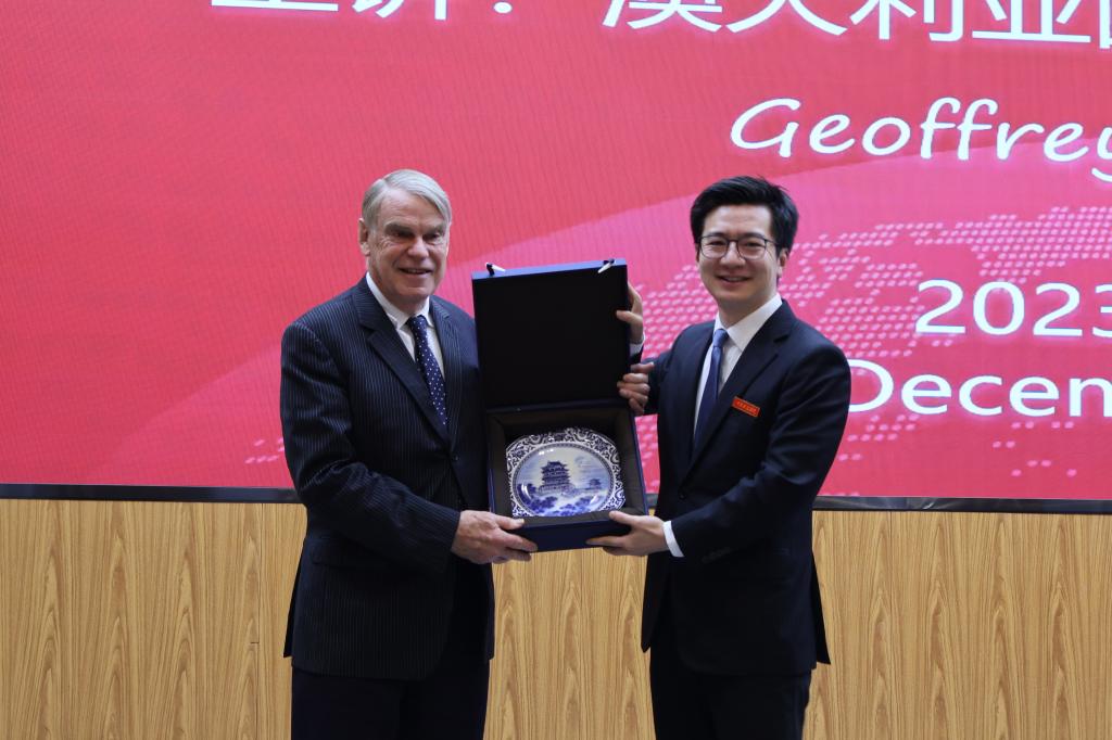 当天上午,Geoffrey David Wilmoth实地参观校史馆、博雅国际学院、湖畔艺术中心和综合运动馆后,在行政南楼第七会议室与师生代表举行座谈会,围绕“为什么要出国留学?”这个话题与大家展开交流。他表示,出国留学很有趣、很受用,可以获得不同的学习环境和丰富的跨文化体验,职业前景也将大大提升。他还现场介绍澳大利亚国王学院学习环境、学分制和KOI高质量发展,与师生代表所关心的留学旅程、教学实习、中西文化、奖学金设置等热门话题进行互动讨论。下午,Geoffrey David Wilmoth在J19栋二楼多功能报告厅举行“博雅国际名师讲堂”专题讲座,主要从中西高等教育产业化、国际留学生的流动趋势、跨国教育的文化理解及课程国际化等方面进行分享。喻恺董事长全程与同学们一起聆听。