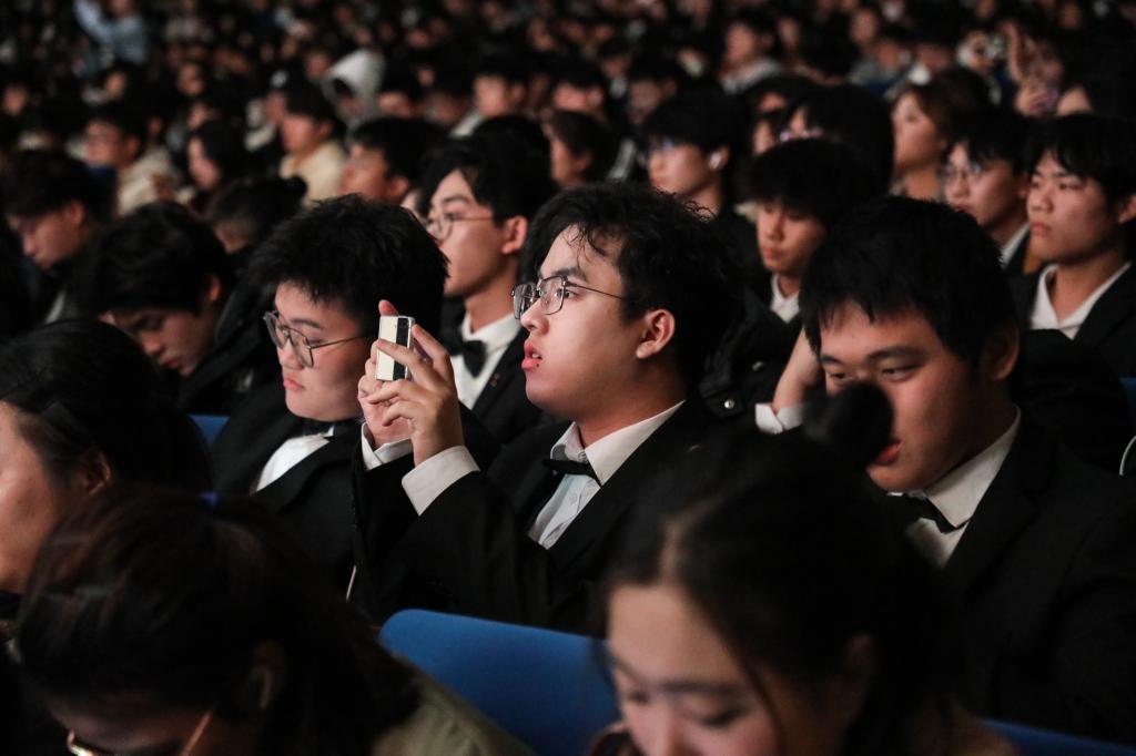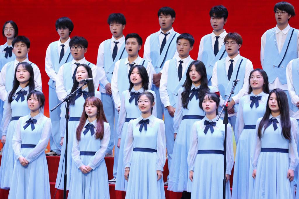 13支表演队伍、24首歌曲,热烈的气氛感染现场1500余名师生。《爱我中华》《保卫黄河》《祖国不会忘记》《唱支山歌给党听》《同一首歌》《有我》等一首首红色经典、一句句时代强音,都在当代青年学生的激昂嘹亮歌声中得到倾情演绎和动情表达。一颗颗赤子之心、一腔腔报国热情,为师生呈现了一堂融合家国情怀、青春奋进的“思政大课”。