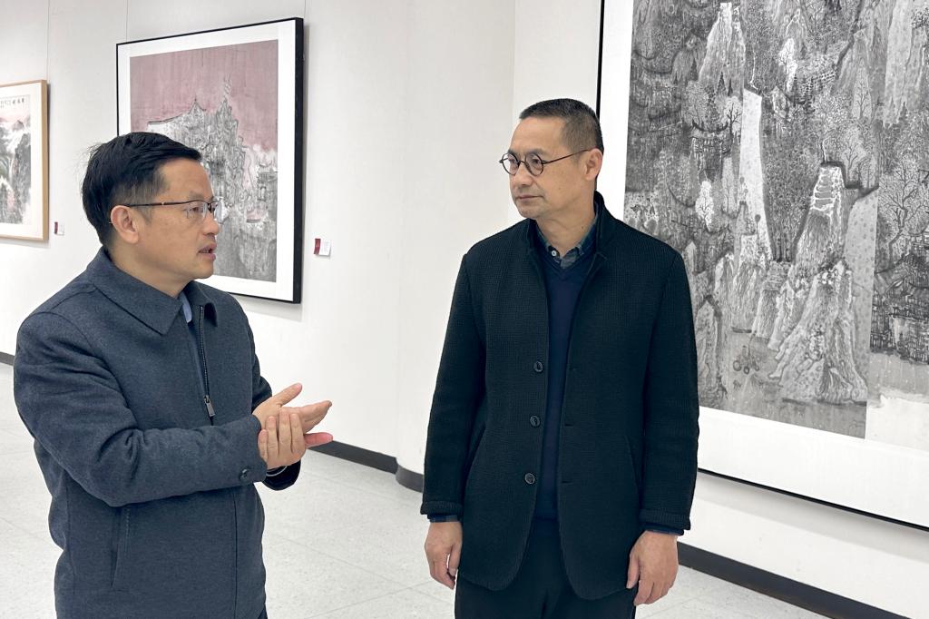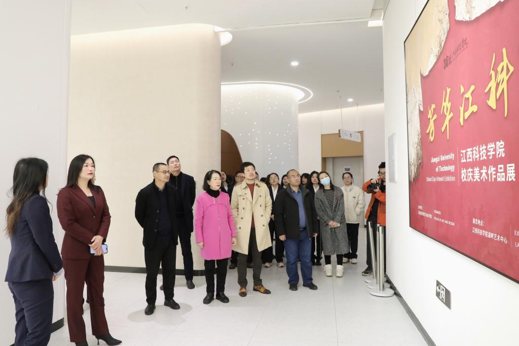 江科网讯(记者 何强江)为献礼学校30周年华诞,宣传部、艺术设计学院特别策划“芳华江科”30周年校庆美术作品展。12月12日上午,校党委书记邓弘,校长张海涛,副校长林素君、陈辉、李玮,校党委副书记夏拥华等校领导走进湖畔艺术中心,在艺术设计学院院长陈庆勤、原江西画院院长刘杨的陪同下,参观了作品展。