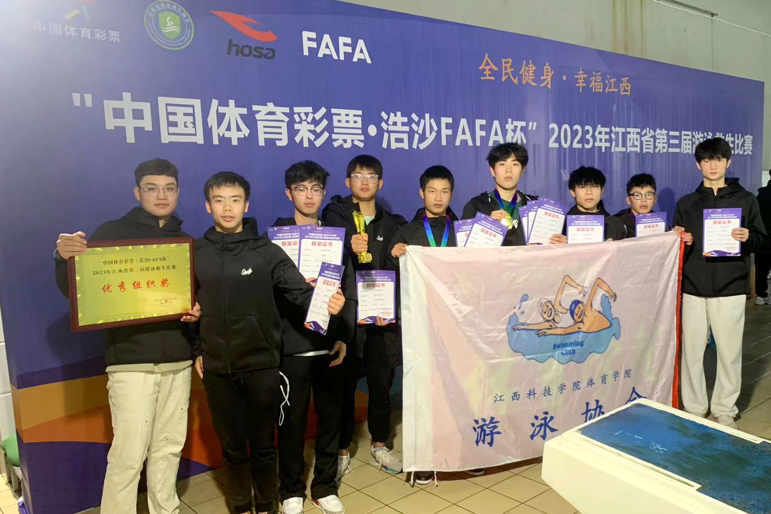 据悉,此次比赛共有28支代表队200余人参加,是江西省游泳救生领域的一次盛会。各队伍都展现出了。在比赛中,游泳队的同学们队充分发挥极高的竞技水平和良好的团队精神,齐心协力,不怕困难,坚持不懈,最终取得优异的成绩。