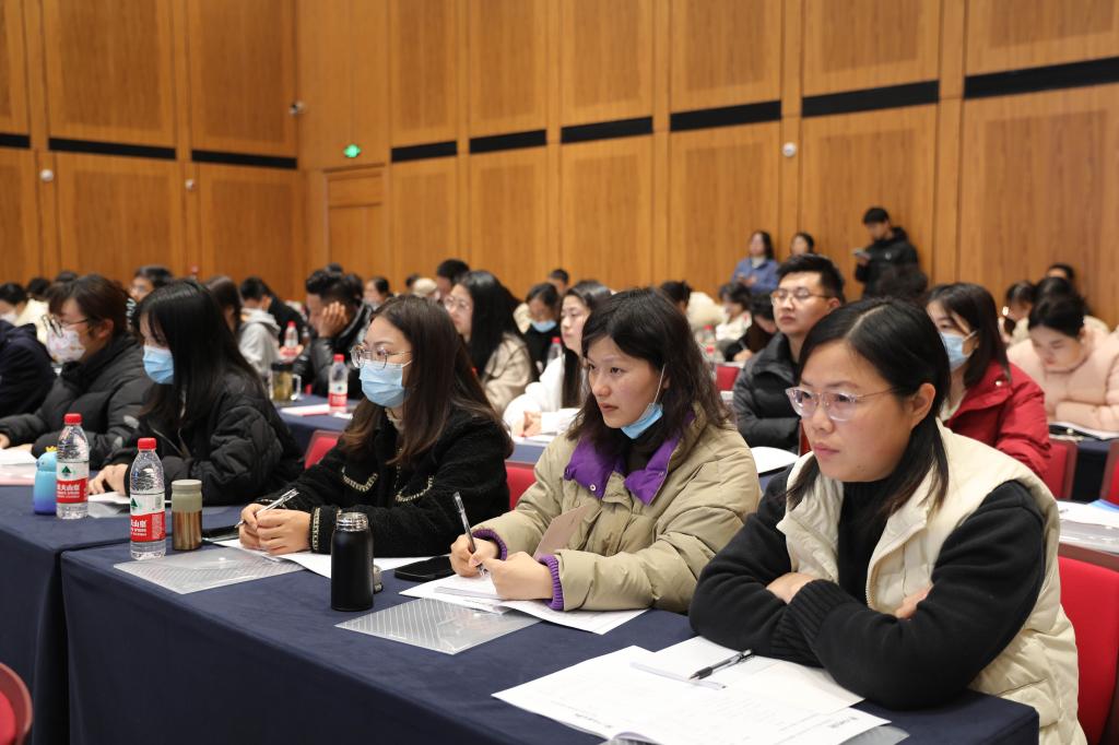 闵桂林副校长在报告中表示,辅导员是一个班级的“领头羊”,影响着一个班级的班风、学风,密切关系到学生的成长成才,是培养德智体美劳全面发展的社会主义建设者和接班人的重要力量。他就如何做好辅导员工作提出五点要求:一要以务实的态度提高个人素质水平。要在工作中找准自己的不足之处,并加强理论学习和实践运用,不断提高综合能力;要站在学生角度,进一步完善学生管理工作,把学生服务好、培养好。二要以宏观的视角提高个人工作格局。要提高思想认识,充分利用学校资源将“三全育人”“十大育人体系”贯穿到日常工作中;要发挥好辅导员的桥梁纽带作用,凝聚师生力量,整合各项资源,提高育人质量。三要以激活自治扎实班级管理基础。要加强培养学生的自治能力,提高班级凝聚力和学生自我管理能力,让学生形成良好的学习、生活习惯。四要以创新举措打通落实关键节点。要积极探索学生工作的“最后一公里”,找到学生工作的盲点、薄弱点,查缺补漏,将工作做细做实,确保所有工作落实到位。五要以做事为中心走出人际关系困惑。要明确自身定位,拔高工作站位、提高工作理念,把事情做好、学生培育好作为出发点和落脚点;要及时解决学生的疑难杂症问题,对学生多点关心、关爱。闵桂林副校长希望全体辅导员认真学习思考,紧密联系工作实际,在今后学习工作中继续坚守初心,爱岗敬业,潜心育人。