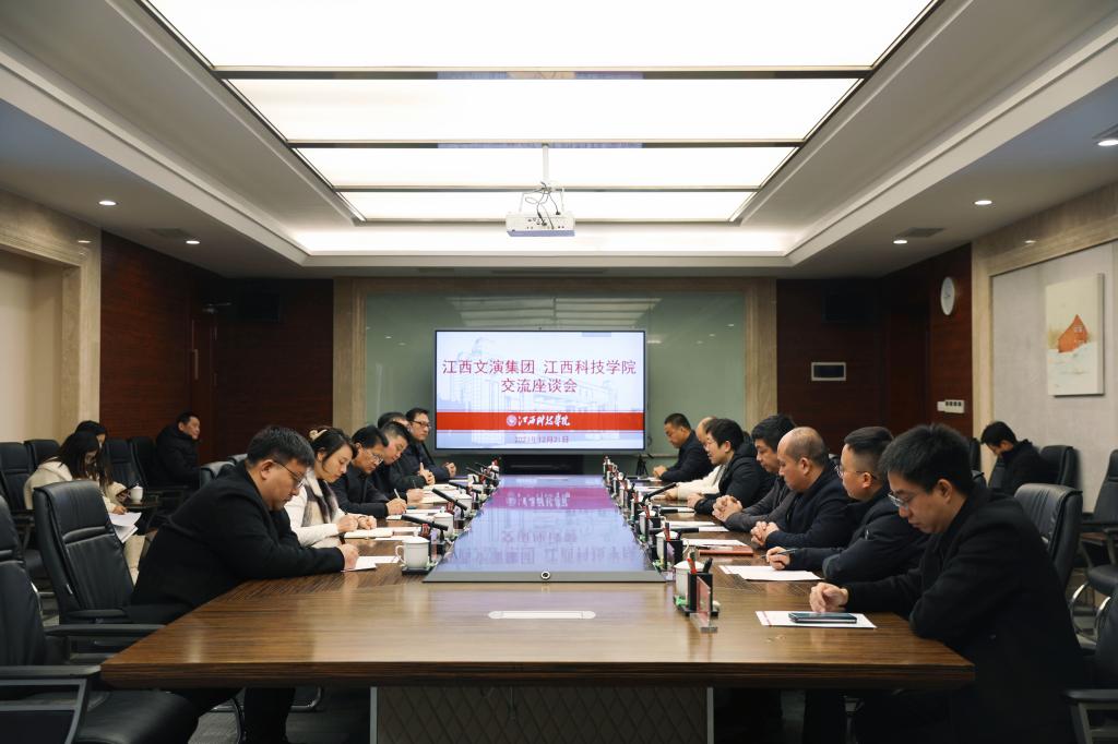 江科网讯(记者 邹珍珍)12月21日上午,江西文演集团党委委员、副总经理柯亨龙一行来我校参观交流,受到我校副校长李玮的热情接待。双方在行政南楼第三会议室举行座谈会,就开展校企合作、产业学院合作等意向进行深入交流。