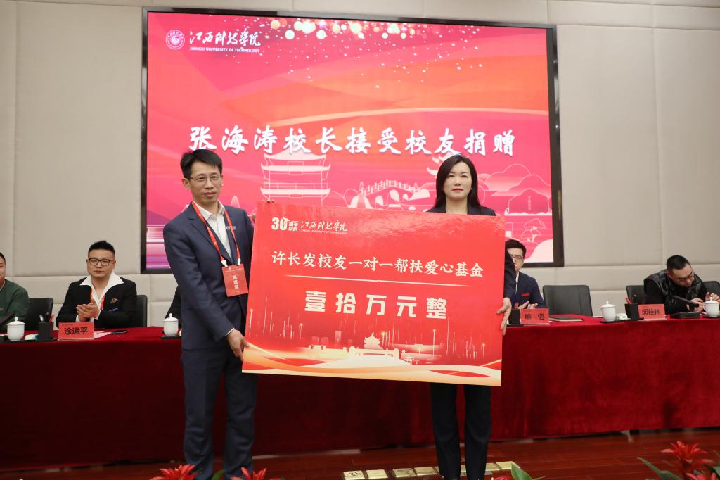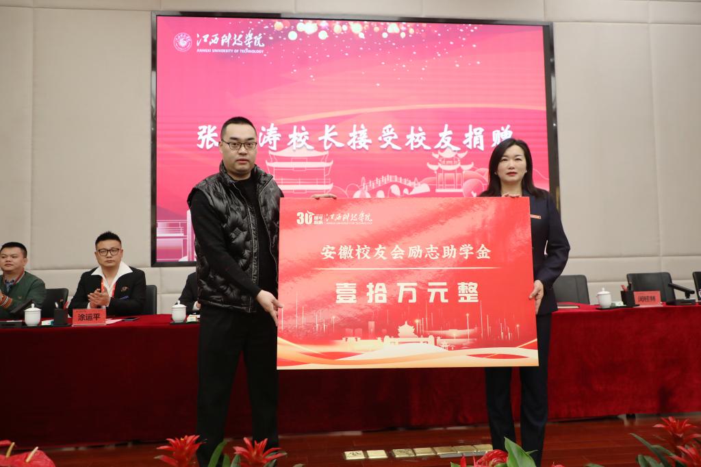 喻恺董事长代表学校向设立奖学金的校友会和校友们表示感谢。他表示,30年来,江科形成了深厚独特的文化底蕴,“自强不息,求真务实”的校训,“乐学善思,知行合一”的优良学风,“自信自强,创业创新”的江科精神是学校独具魅力的文化特质。今天设立的各项奖学金,正是江科精神的传承,是江科特质的延续。他指出,相信奖学金的设立不仅会激发鼓舞同学们学习的斗志,使同学们看到通过勤奋努力能够创造财富,也使同学们更加坚信学习可以改变命运。希望同学们要以优秀校友为榜样,更加具有使命感、责任感,更加积极、乐观,更加有斗志、有动力,脚踏实地,奋发有为,努力成为可堪大任的时代新人,用成绩回报校友,用行动回馈社会;要通过参观校史馆、校友馆,观看校史纪录片,阅读校史资料等,加强对江科校友人物、校史故事、文化传统的学习与熏陶,将江科的文化基因融入自己的精神血脉,真正成长为有“江科人”风骨的青年学子。