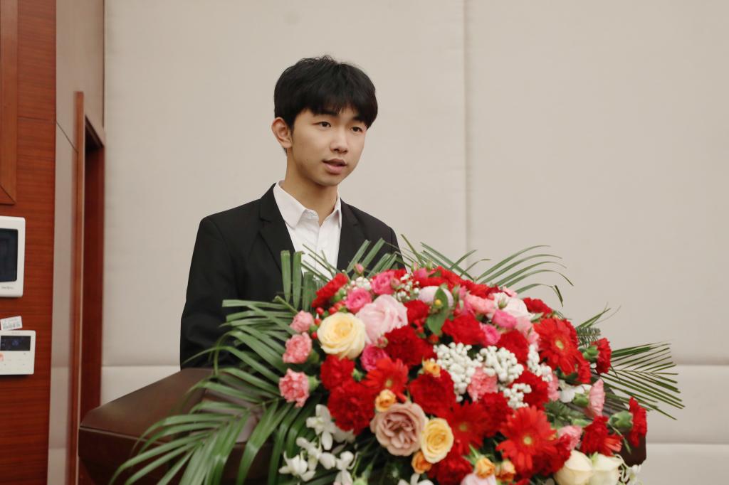 学生代表熊家俊在发言中表示,将以优秀校友为榜样,做一个具有家国情怀和懂得感恩的人,珍惜大学时光,提升综合素质,在有能力的一天回馈社会、回报母校,将爱心延续下去。