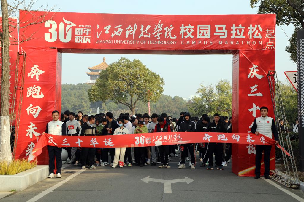 江科网讯(记者 何强江 陈佩璇 邹珍珍)1月1日上午,江西科技学院30周年校庆马拉松火热开赛。校长张海涛为开跑鸣哨,副校长林素君、陈辉、李玮、周冰冰、吕文威等校领导出席开跑仪式。
