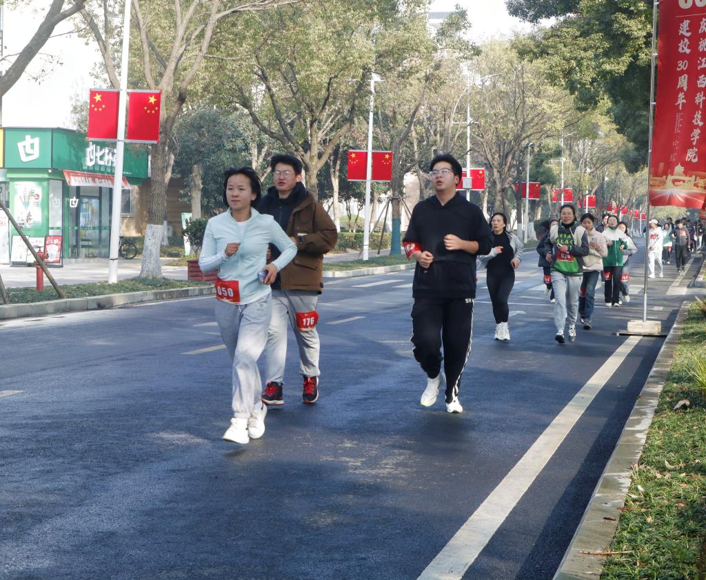 参加马拉松的江科师生和校友从临水广场起点出发,按照设置的路线奔跑在校园里感受冬日暖阳,尽情享受运动的快乐。30周年校庆马拉松是学校校庆最大规模的群体赛事活动。赛道围绕校园沿途风光设计,途径景观大道、综合运动馆、奥林匹克中心、庐山餐厅、学生活动中心、行政楼、国旗台等江科标志性地方。参赛者在奔跑的同时,也能看到学校的变化与新貌。