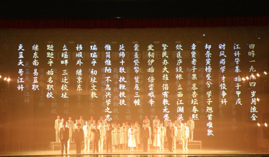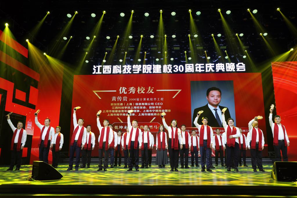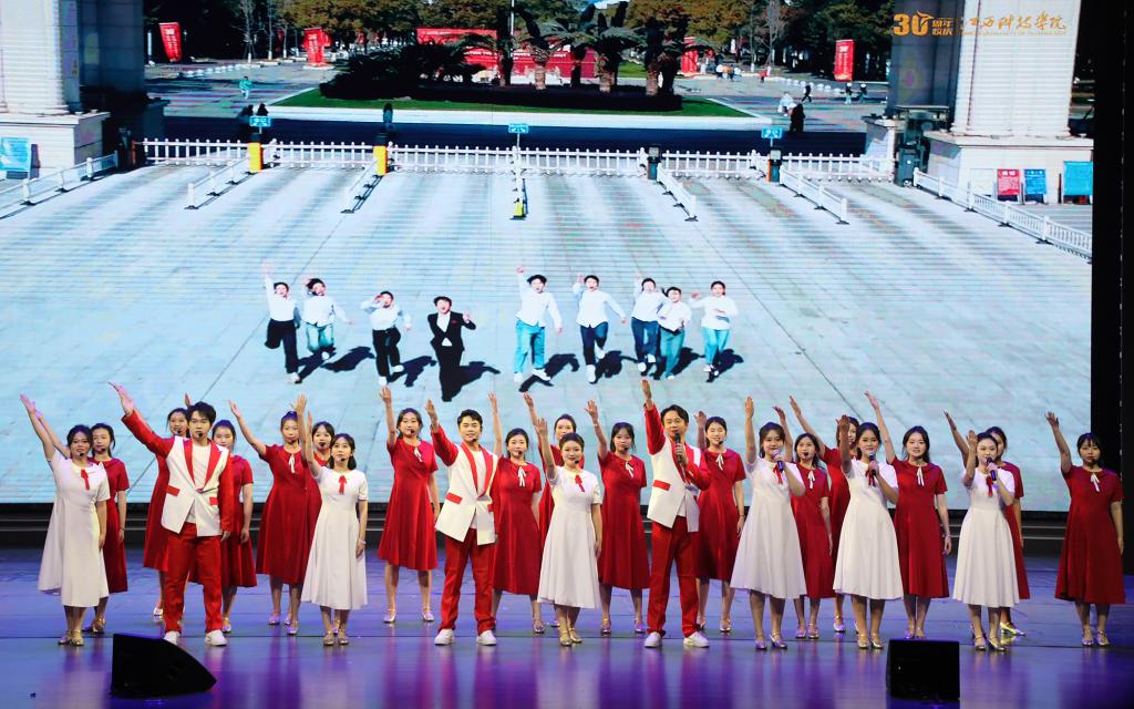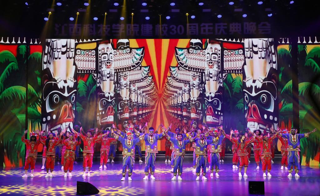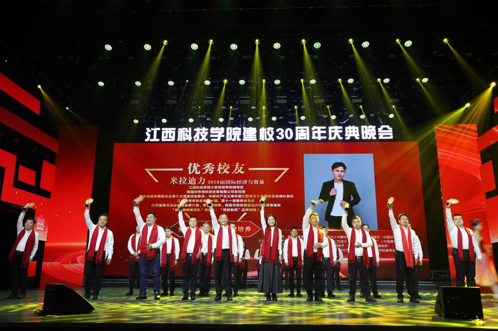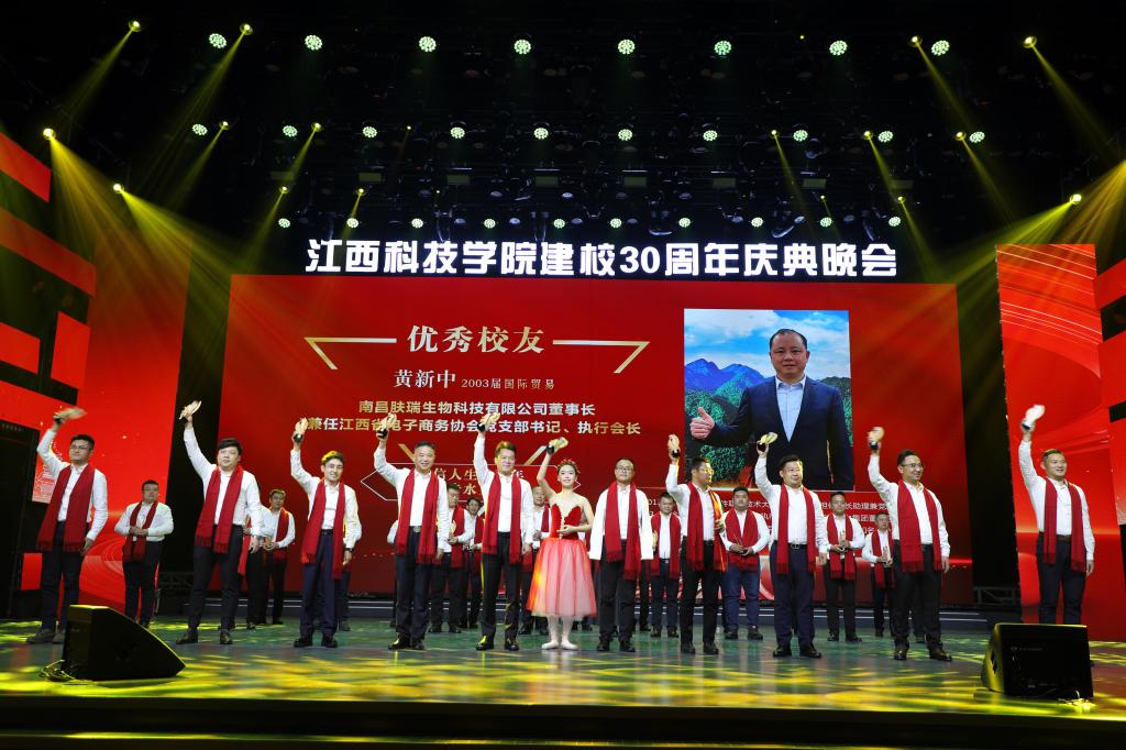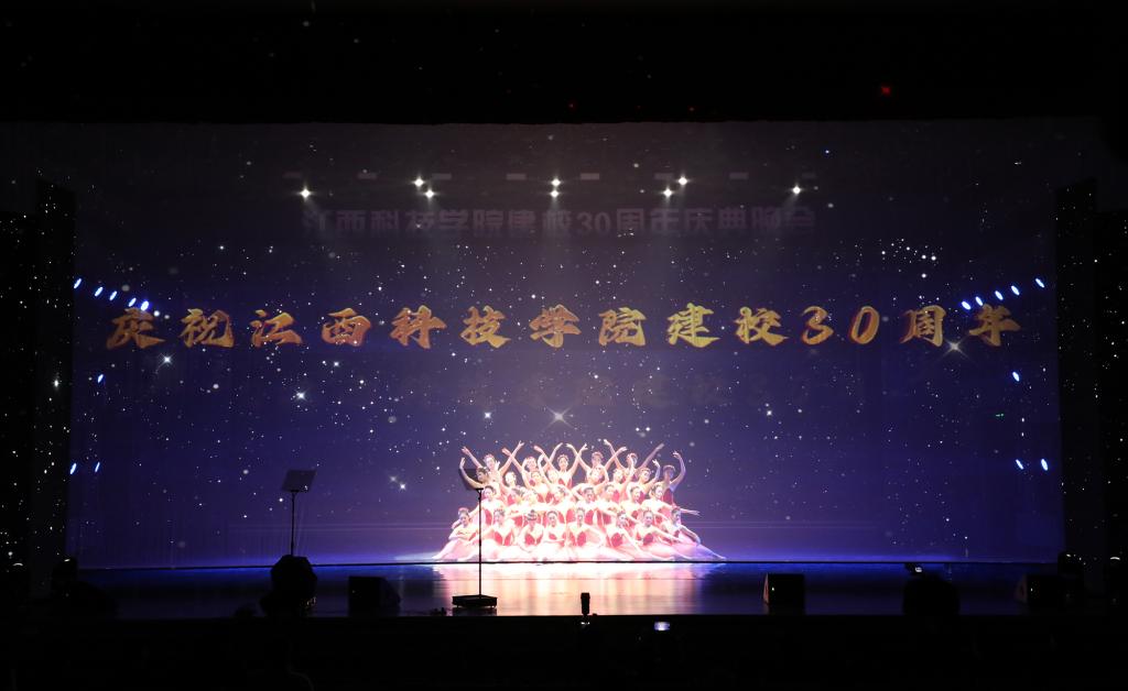 瑶湖之畔弦歌起,风华正茂奏凯章。晚会主体分为“蓝天憧憬阔”“芳华青春潮”“执梦耀未来”三个篇章,通过歌舞表演、时装走秀、器乐演奏、诗歌朗诵等精彩纷呈的节目以及视觉化呈现,传递出对祖国的热爱与期盼,表达对母校深厚而炽热的情感。“一路走来,爱是无言表白;追梦脚步,汇成赣江澎湃……”尾声歌舞节目——建校30周年主题歌《一起向未来》唱了薪火相传的最强音,开启砥砺奋进的新征程。
