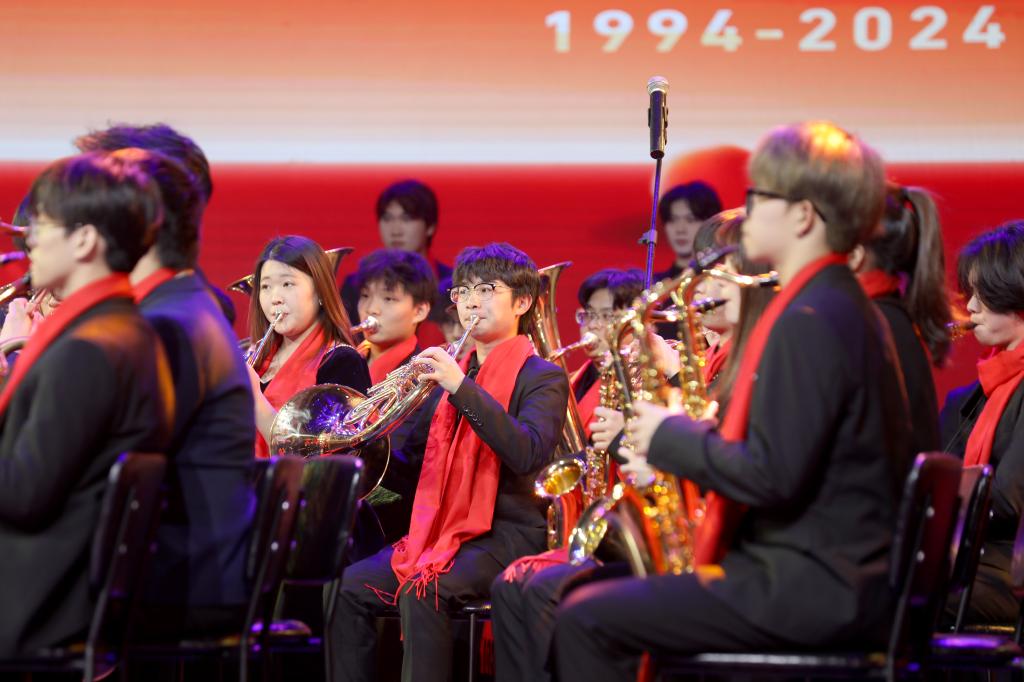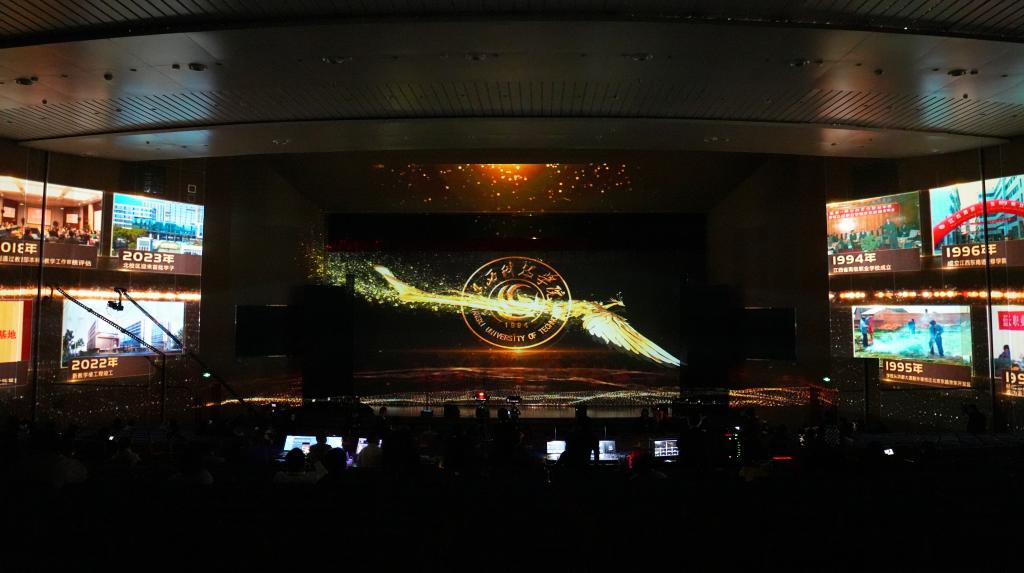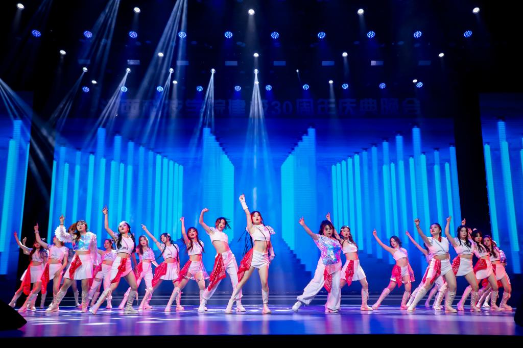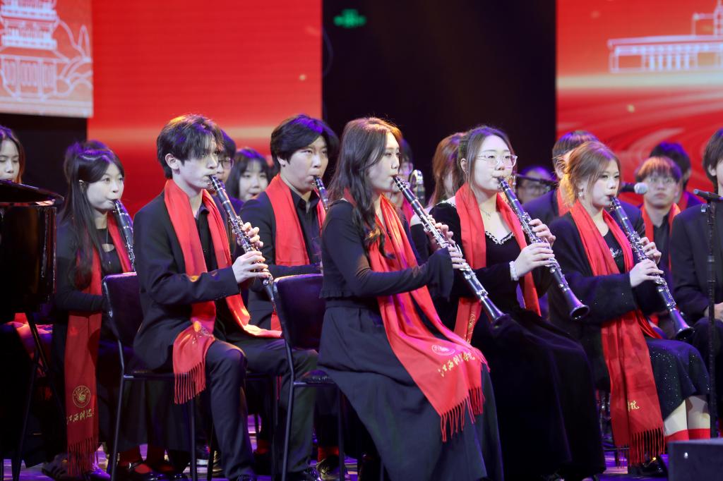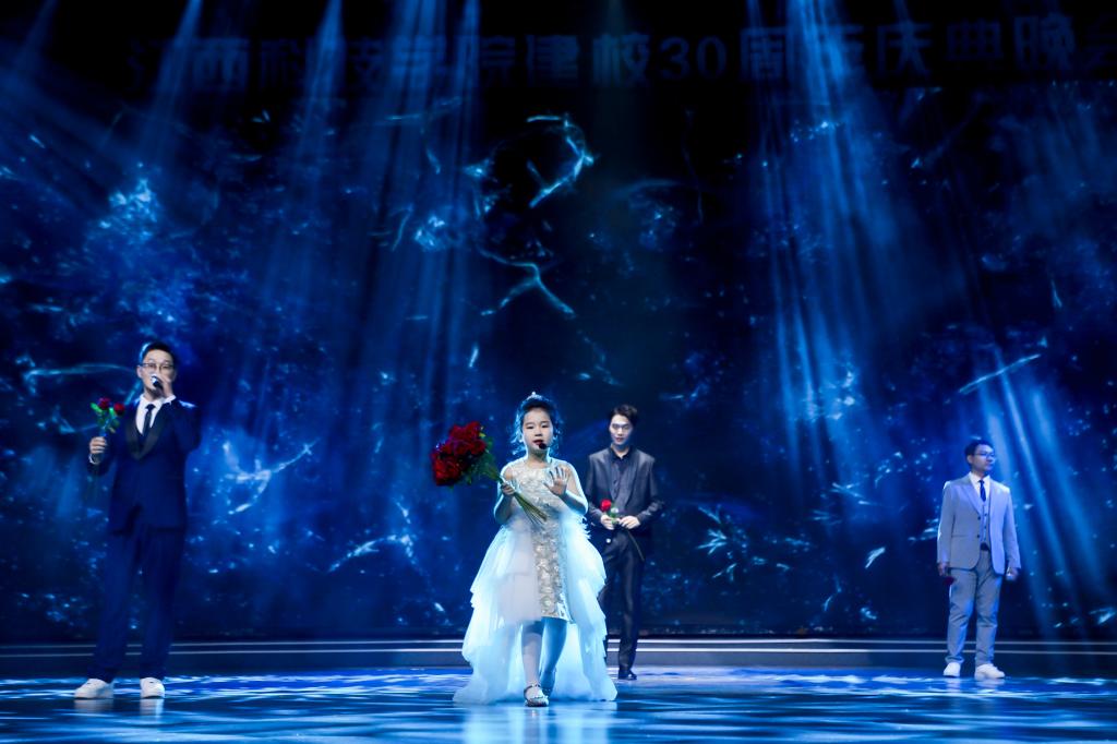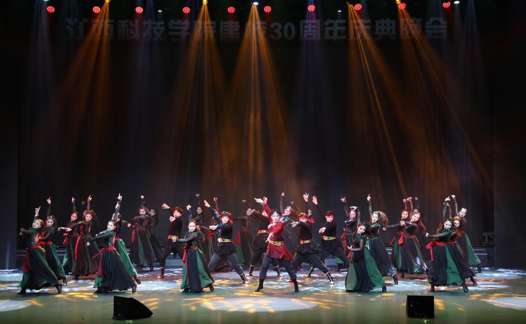 瑶湖之畔弦歌起,风华正茂奏凯章。晚会主体分为“蓝天憧憬阔”“芳华青春潮”“执梦耀未来”三个篇章,通过歌舞表演、时装走秀、器乐演奏、诗歌朗诵等精彩纷呈的节目以及视觉化呈现,传递出对祖国的热爱与期盼,表达对母校深厚而炽热的情感。“一路走来,爱是无言表白;追梦脚步,汇成赣江澎湃……”尾声歌舞节目——建校30周年主题歌《一起向未来》唱了薪火相传的最强音,开启砥砺奋进的新征程。