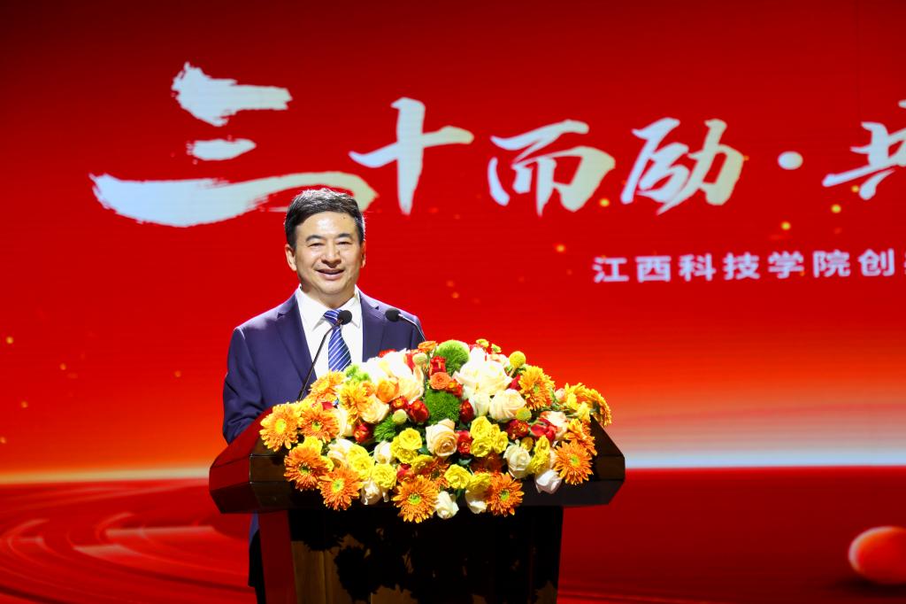 “正是怀着这份年轻时的豪迈,三十岁的江科一路高歌猛进,迈着豪情的步伐,奔跑在中国民办教育的前列。”江西科技学院创办人于果在以《三十而励 共向未来》为题的致辞中,动情表达自己深耕民办教育的所思所感。他说,回首来时路,每一步都映照着无数的汗水与感动。此时此刻,首先要感谢伟大的时代,其次要感谢温暖的江科人和自己的家人。不忘初心方能行稳致远,不忘本来方能开辟未来。于果深情表示,这是最好的时代,属于你,属于我,属于有梦想有担当有干劲的青年一代。时代是出卷人,我们是答卷人。再出发,要心怀家国,办人民满意的教育;要心系学子,做人民满意的教师;要放眼未来,办人民满意的学校。秉承三十年的荣光,向着建设特色鲜明、国内领先的应用型民办本科高校阔步前行。