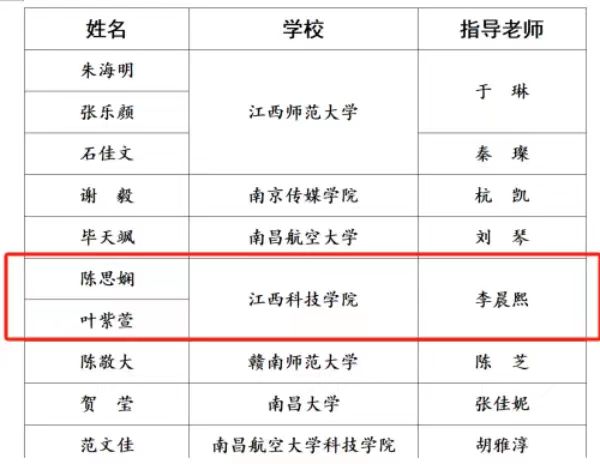 江科网讯 近日,江西省首届“新声”主播大赛暨第十五届海峡两岸电视主持新秀会圆满落下帷幕。经过激烈的竞赛角逐,我校音乐舞蹈学院播音与主持艺术专业学子陈思娴、叶紫萱荣获“十佳主持人”称号,指导老师李晨熙获评为“十佳优秀导师”。