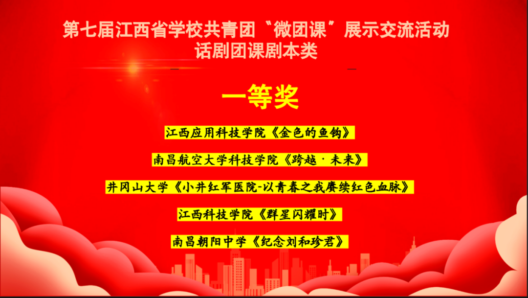江科网讯 近日,第七届江西省学校共青团“微团课”展示交流活动(话剧团课)示范展演落下帷幕。我校两部作品从全省高校中脱颖而出,《群星闪耀时》(音乐舞蹈学院)荣获剧本类一等奖,《人民永远铭记你们》(音乐舞蹈学院)荣获舞台类二等奖。