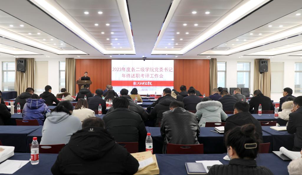 张海涛校长作点评讲话,代表学校向各学院院长的工作成效表示高度肯定与真诚感谢。她指出,2023年是繁忙艰辛的一年,也是收获满满的一年。这一年,学校在大家的共同努力下,取得了大踏步的发展,通过一次次喜报喜讯、一场场文体活动、一项项卓越成绩,实实在在地彰显了“实力江科、活力江科、魅力江科”风采。她强调,“上面千条线,下面一根针”,院长在贯彻落实学校工作中发挥着举足轻重的作用。学校高度重视院长年终述职考评工作,旨在通过述职全面了解院长工作,进一步加强沟通交流,牢固树立“全校一盘棋,上下一条心”思想。各学院院长要深入思考,进一步规范述职工作。准确理解述职考评工作要求,在述职中充分体现个人工作;规范书面用语,规避错误提法,提升职业素养。要上下齐心,不折不扣落实学校布置的工作。围绕中心抓发展,提高谋划能力,一切工作围绕人才培养这个核心来抓发展,做到关爱学生、尊重老师。围绕重点抓落实,提高执行能力,在“日常工作日常做,例行工作例行做”的同时,抓牢重点、难点,坚守一线攻坚克难,带头“啃硬骨头”。围绕不足抓改进,提高纠偏能力,关注突发情况、关键问题、新变化、不足短板,抓改进、抓弥补,带领学院发展蒸蒸日上。最后,张海涛校长希望大家以30周年校庆为新的起点,以更加积极向上的姿态谋划好2024年工作,凝心聚力、真抓实干,推动学校发展再创辉煌,以中国式现代化全面推进强国建设、民族复兴伟业作出更大贡献。