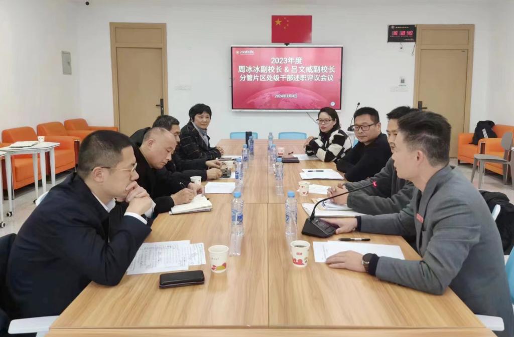 江科网讯(记者 刘莹 何强江)为梳理盘点2023年各项工作,进一步汇聚起执楫奋进、勇毅前行的强大合力,近日,董事长喻恺、党委书记邓弘、校长张海涛等全体校领导相继主持召开各分管片区年终述职考评会议,以述互学、以述促干,奋力开创学校内涵式高质量发展新局面。