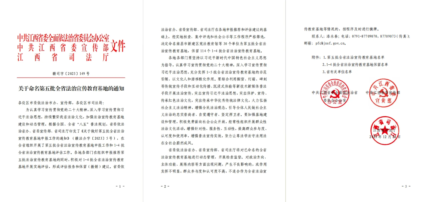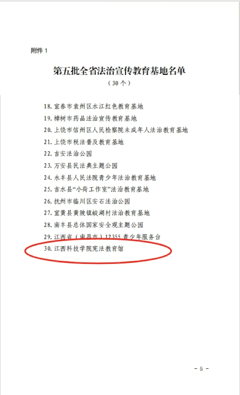 江科网讯(记者 何强江 何钰馨)近日,省委依法治省办、省委宣传部、省司法厅联合公布了第五批全省法治宣传教育基地名单,经自主申报、资格审查、专家评审等环节,江西科技学院打造的宪法教育馆成功入选。