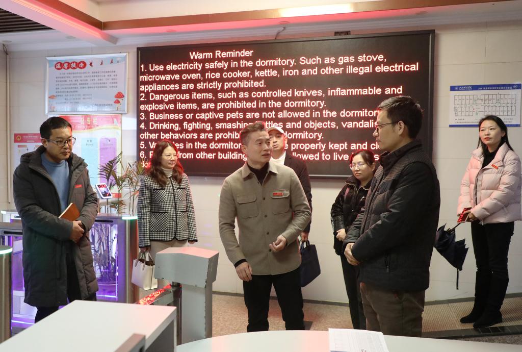 座谈会后,专家组一行在周冰冰及相关部门负责人的陪同下先后实地检查了28栋学生宿舍、宿18栋消控中心、保卫处监控中心、医学院药学实训室、图书馆消控中心、现代教育技术中心实验室、三清山食堂等场所,针对消防安全设施、消防安全通道、消防安全管理台账等进行了详细检查。