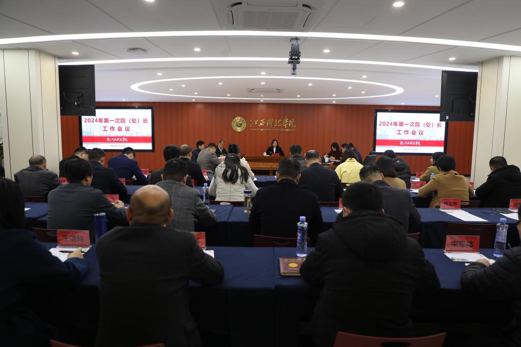 江科网讯(记者 刘莹)2月20日上午,校长张海涛在行政南楼第六会议室主持召开2024年第一次院(处)长工作会议。全体在家校领导出席会议。各职能部门负责人、各学院院长参会。