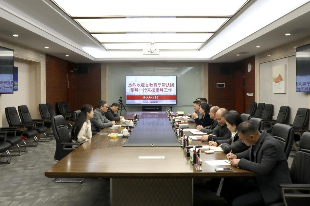 江科网讯(记者 何强江)2月20日下午,省教育厅帮扶团专家组组长、南昌师范学院教务处副处长刘旺勤带领帮扶团成员、南昌师范学院教育学院院长张劲松和省教育厅社办党委办公室干部熊紫玉来校指导工作。校长张海涛、副校长周冰冰出席座谈交流会。校(党)办、教务处、学工处、总务处、保卫处、图文信息中心、现代教育技术中心、信息处等职能部门负责人参加会议。