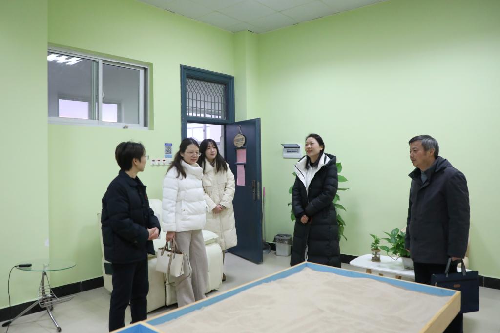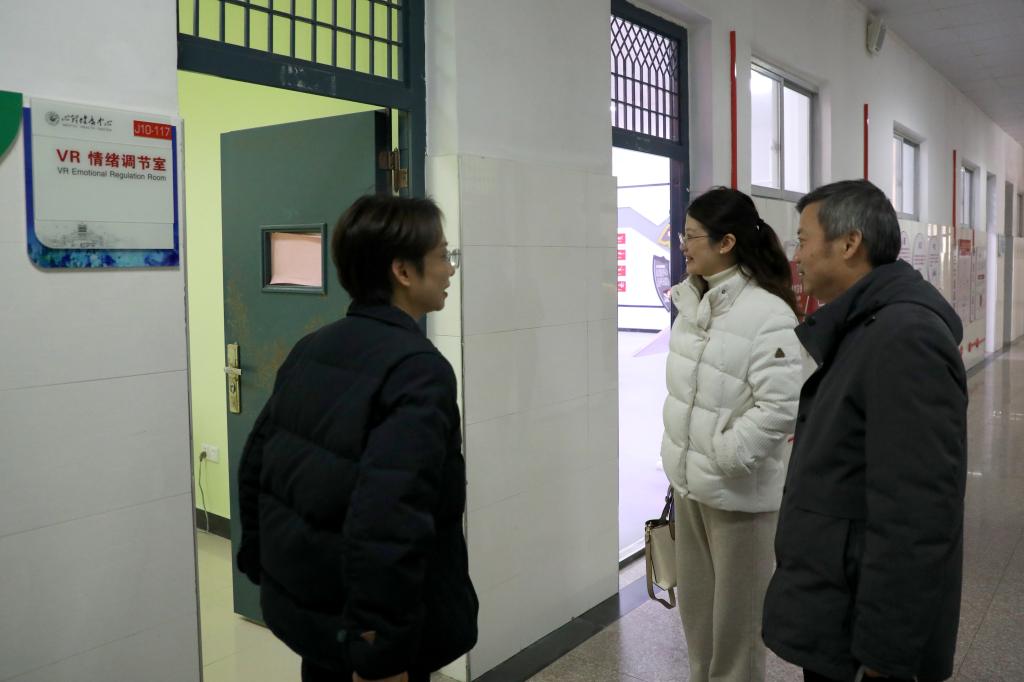 李洁副主任、陈方红副书记还参观了我校心理健康中心,杨铃琪主任向各位专家介绍了中心的使用情况和心理工作开展情况。