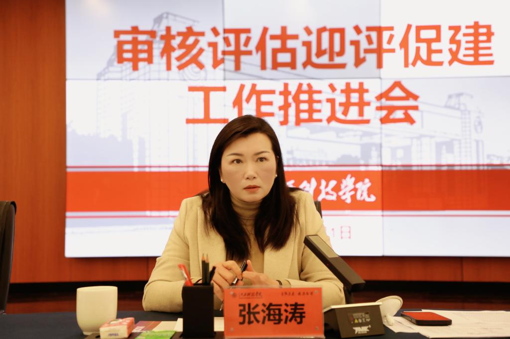 就迎评促建工作,张海涛校长提出三点要求:一是加强专项工作的纵向推进,提高执行效率。要从上到下,纵向推进,提供工作的执行效率。二是加强总体工作的横向联动,提高协同效率。各职能部门和各学院要加强协同意识,提高工作主动性。三是加强特色工作的多向糅合,提高整合效应。要从教育教学、学生管理、国际教育等多项工作中凝练特色,整合智慧、力量、资源,形成江科的育人特色,朝着特色鲜明、国内领先的应用型民办本科高校目标笃定前行。
