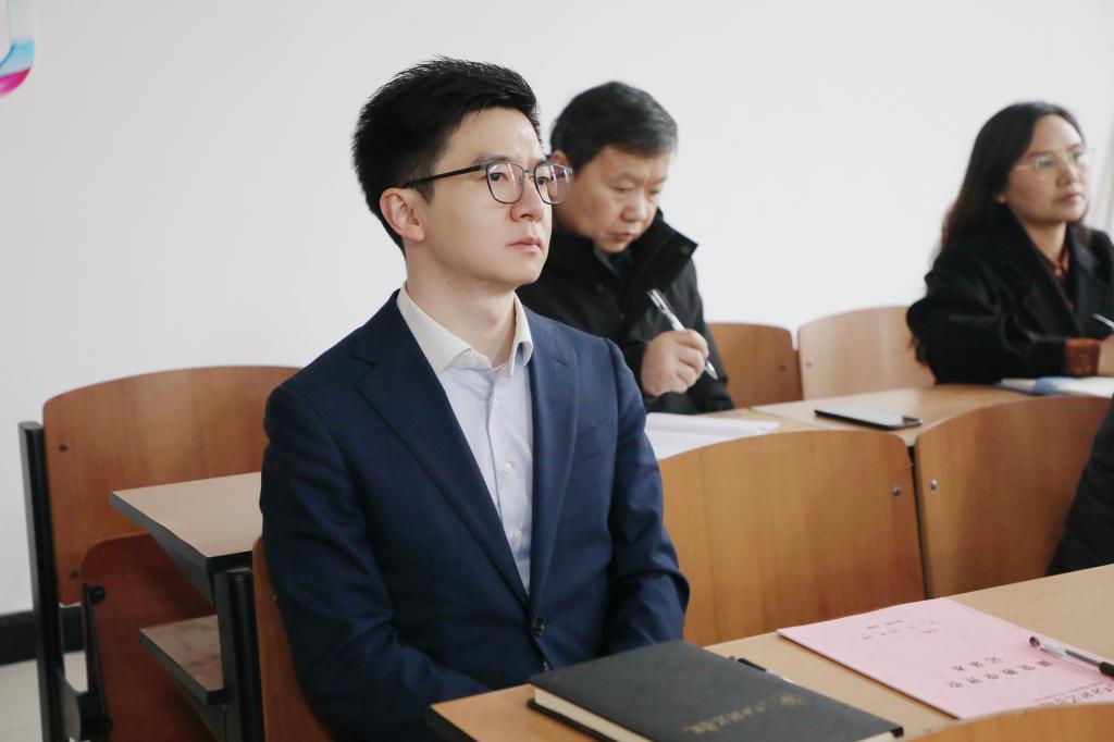 喻恺董事长认真听课,详细做好听课记录,仔细观察学生上课状态,并对教学过程、教学效果和教学设施等情况进行全面了解。课后,喻恺董事长与刘家桂老师进行交流,对其教学研究、教学方法、创新互动方式等表示高度肯定。他强调,高校立身之本在于立德树人,思政课是立德树人的关键课程,在学校探索高质量内涵式发展、即将迎来新一轮审核评估的背景下,思政课教师更应该不断提升理论修为与教学水平,全方位学习党的创新理论成果,推动党的创新理论进青年大学生头脑,努力培养心怀国之“大者”,堪当民族复兴大任的时代新人。