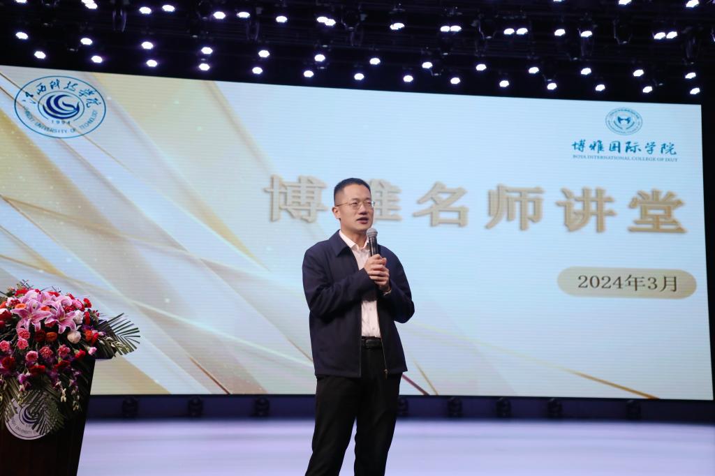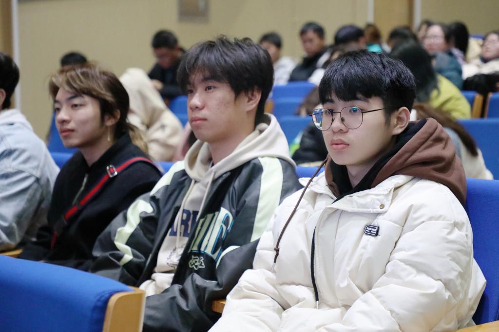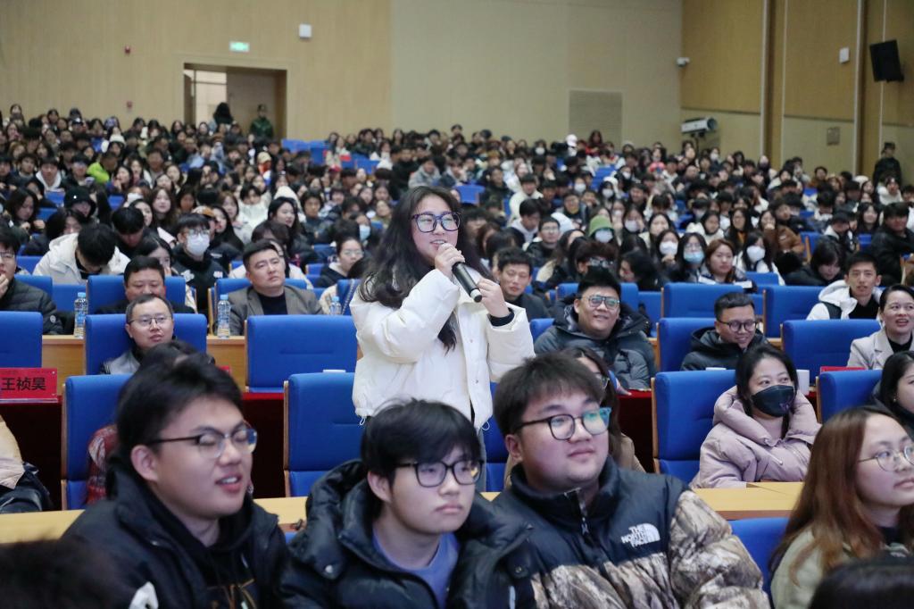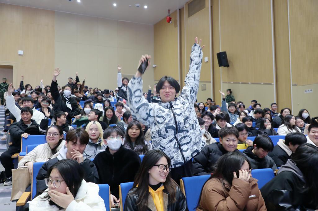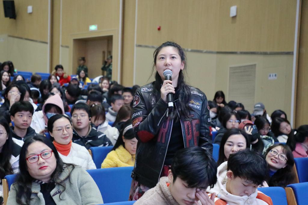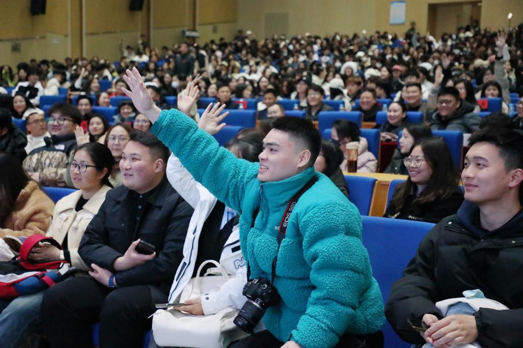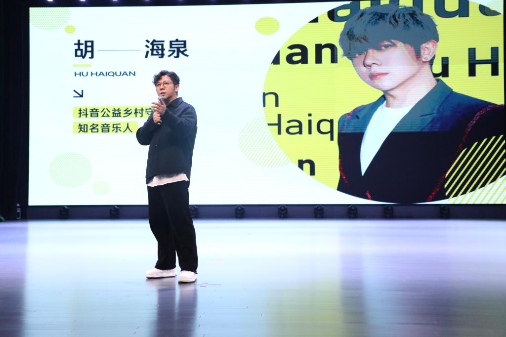 胡海泉先生生动讲述了自己的成长经历,从高考“失利”到因缘踏上舞台,从北漂时倍感迷茫到专注创作、自学成材,从顺应时代发展创新到多行业领域创业投资……他跌宕起伏、丰富多彩的人生故事紧紧抓住了听众们的心,赢得了阵阵掌声。“一件事专注做一万小时,你就能成为专家。”胡海泉先生鼓励大学生朋友们找到热爱的事业并全心投入,用好奇心、满腔热血去驱动自己持续学习,打开格局、提高情商,在自己选择的方向上创造属于自己的价值。他还分享了自己参与环境保护、助学扶贫、助力乡村振兴等公益项目的经历。“勿以善小而不为。”他指出,近年来,我国新基建、数字经济快速发展,取得了伟大建设成就,为参与公益活动创造的良好的条件,希望同学们能够积极参与到公益活动中来,在奉献爱心中创造社会价值,获得内心满足感与成就感。他强调,乡村是国家的根基,是社会稳定和发展的重要支撑,人才匮乏、农产品销售困难等问题不仅影响了乡村发展,也关乎着整个国家的未来,希望同学们能够利用自己所学的知识,通过志愿服务、返乡创业等方式为乡村振兴贡献力量,为强国建设、民族复兴伟业添砖加瓦、增光添彩。