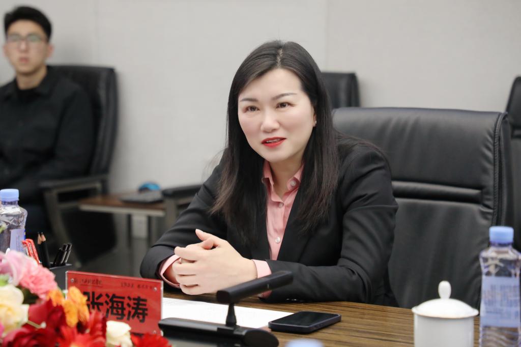 在见面会上,张海涛校长代表学校对胡海泉先生一行的到来表示真诚欢迎,并详细介绍了学校的办学定位、人才培养、学科发展等情况。她指出,办学三十年来,学校着力培养学生综合能力、专业能力、创新能力,秉承“OBE教育理念”,根据行业、产业需求不断调整培养方式,为社会培养了三十余万名应用型人才,获得了社会和用人单位的高度评价,探索出了鲜明的应用型特色。近年来,学校不断加大与行业、企业的密切联系,掌握市场变化、行业动态,通过校企共建产业学院、产教深度融合进一步提升了人才培养质量。她表示,胡海泉先生是知名音乐人,具有很高的专业知识素养和影响力。希望未来能够与胡海泉先生加强合作,提升学校舞蹈艺术类相关专业学生的综合能力,共同培养出一大批高质量人才,为地方经济发展贡献力量。