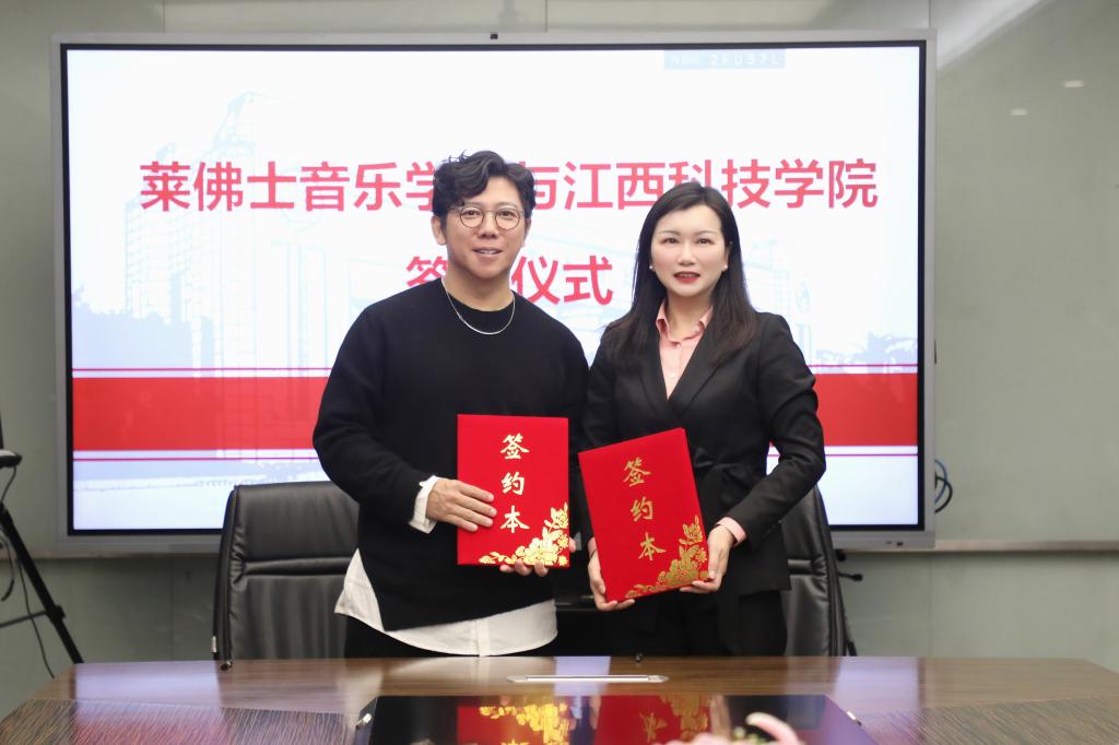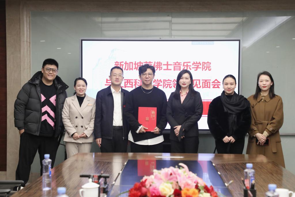 会上,张海涛校长和胡海泉先生代表江西科技学院、莱佛士音乐学院签约,并互赠纪念品。张海涛校长还为胡海泉先生颁发客座教授聘书。