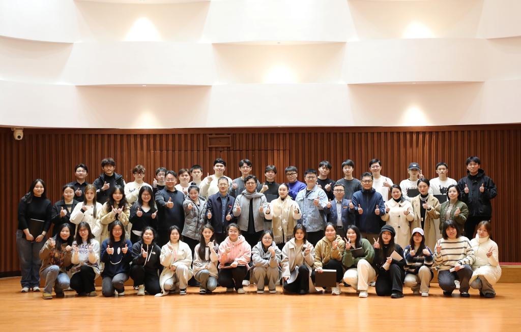 3月5日,胡海泉先生一行来到音乐舞蹈学院,参观了求真音乐厅、沙龙舞台等地。他还走进课堂,聆听同学们演唱的歌曲,对学院人才培养质量给予高度肯定。参观结束后,双方座谈交流,就音乐舞蹈学院相关专业学生的联合培养、师资共建等工作进行洽谈并签署合作协议。