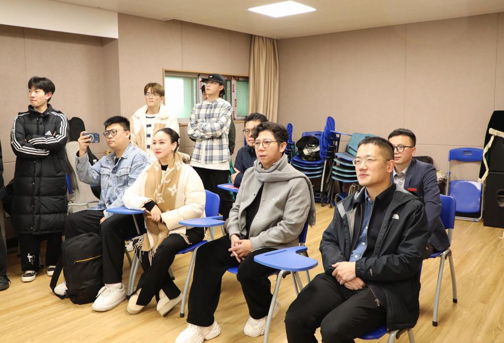 “胡老师,您在南昌最美好的回忆是什么?”“胡老师,如何保持长时间的热爱与强大的执行力?”“您在参与乡村振兴项目时最难忘的事是什么?”“人工智能对于音乐创作带来了怎样的冲击?”在提问交流环节,现场热闹非凡,师生们争先恐后地举手提问,胡海泉先生耐心、详细地解答了同学们的问题。“作为一名盲人,音乐对我来说意义非凡。胡老师鼓励我坚定信念,对播音主持专业保持热爱,不断精进专业能力,用嗓音抚慰更多人。这让我倍感振奋,备受鼓舞!”23本播音3班的黄镇宇同学激动地表示。