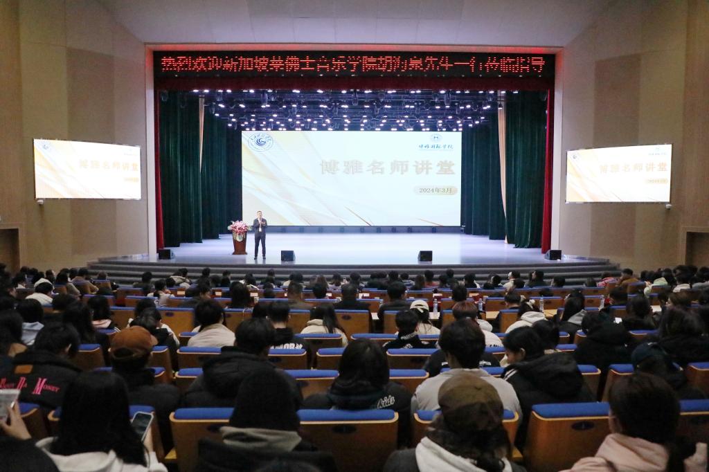见面会后,胡海泉先生在蓝海大剧场参加“博雅名师讲堂”活动。活动由吕文威副校长主持,1500余名师生代表共聚一堂,聆听胡海泉先生带来的文化大餐。