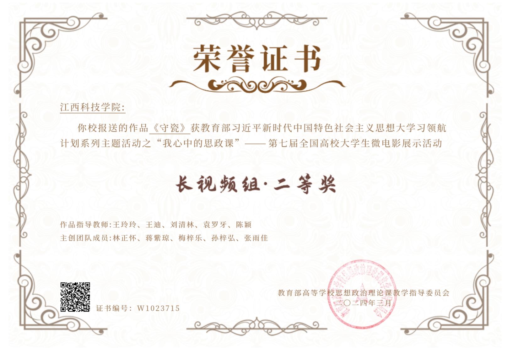 江科网讯(马克思主义学院)近日,教育部公布了习近平新时代中国特色社会主义思想大学习领航计划系列主题活动之“我心中的思政课”——第七届全国高校大学生微电影展示活动的评选结果。我校马克思主义学院拍摄制作的微电影《守瓷》获长视频组二等奖。