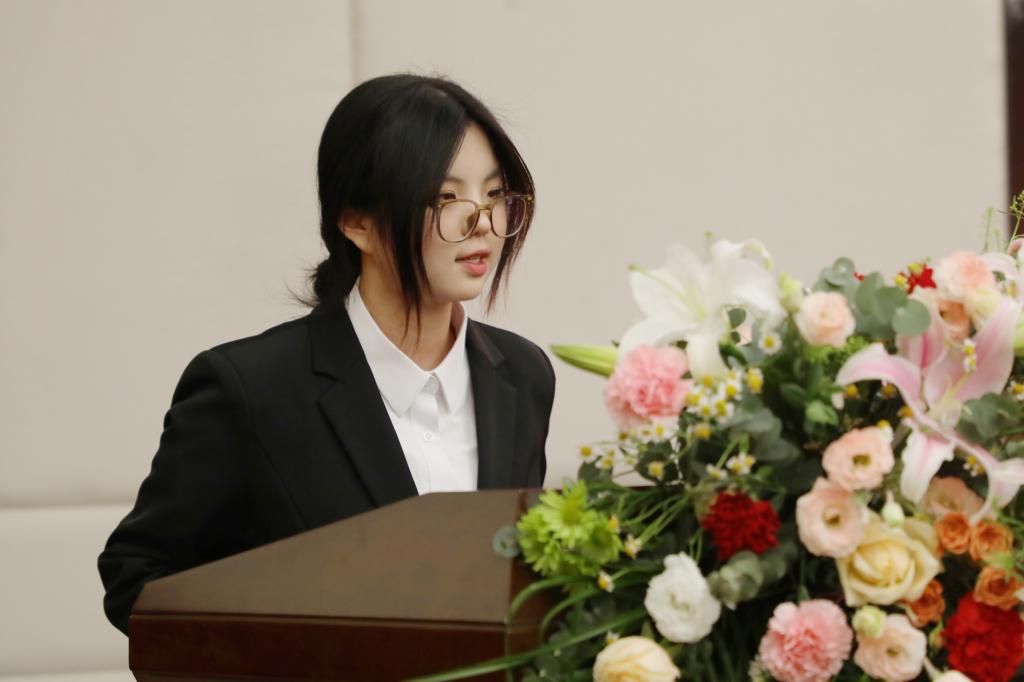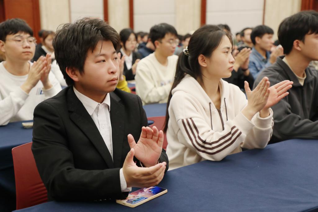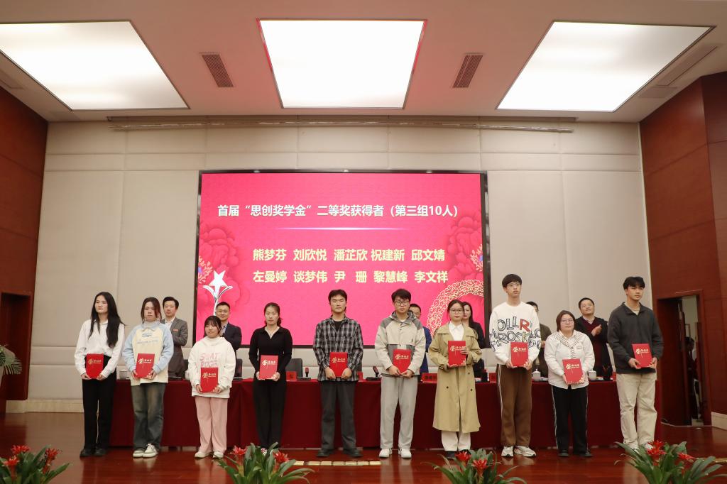 张海涛校长在讲话中指出,“思创奖学金”的设立,是学校校企合作的标志性成果,也是校企双方不断加强产教融合的见证,更是学校长期以来坚持开放办学、坚持服务企业与地方经济发展、坚持培养创新型应用型人才的有力体现;是企业助力学校培养产业人才的一项义举,是资助优秀学生、鼓励学生成长成才的一项善举,是思创公司情系教育、回馈社会的一项爱心之举。她对获奖同学提出三点希望。一是保持信心。“思创奖学金”为校企合作架起了一座“桥”,“思创奖学金”为同学们架起了一座“桥”。希望同学们勇于踏上这座“桥”,坚定通过这座“桥”,不断提升专业素养、综合能力,利用这座“桥”更好地了解产业、了解社会、了解岗位,用自信的精神面貌迎接未来的职业人生。二是保持热爱。“思创奖学金”为同学们打开了一扇“窗”,希望同学们多多“临窗而立”,透过这扇“窗”更加全面地看到即将踏入的社会,看到自身需要完善提升的各方面,为未来成为窗外“万花丛”中的其中一朵做好准备。三要保持奋斗。“思创奖学金”为同学们开辟了一片“天”,希望获奖同学与时代同行,凝聚感奋向上的力量,刻苦学习,自强不息,持续努力,带领广大同学不断进步,为未来奉献社会、创造自己的那片天而不懈努力。