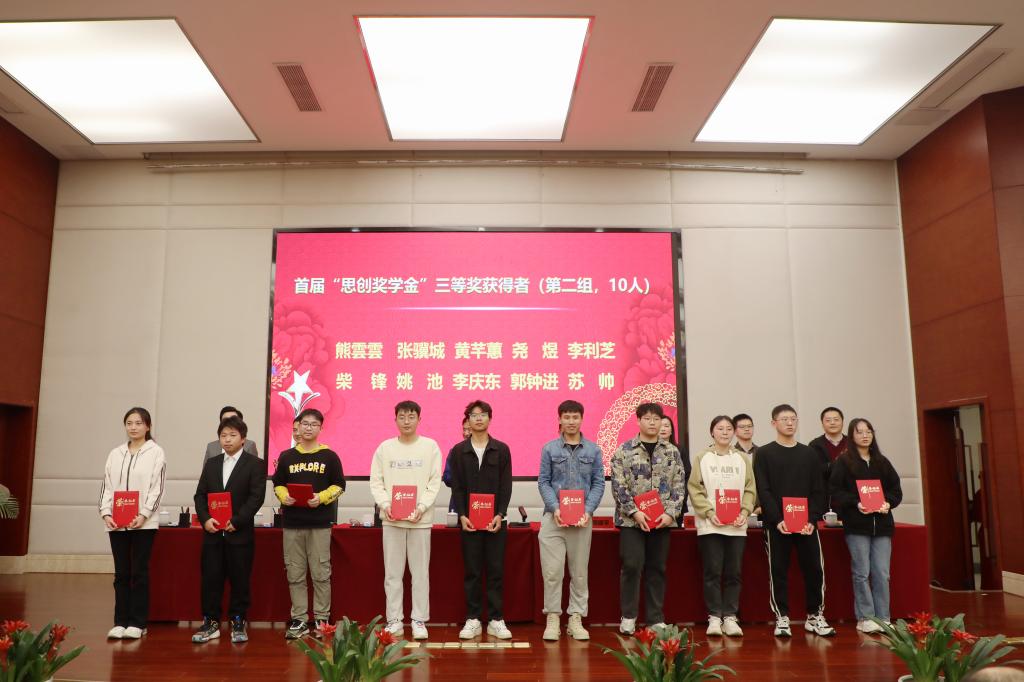 李玮副校长宣读表彰决定,参会领导为获奖学生颁发获奖证书。王瑞、刘智敏作为获奖学生代表发言,对思创公司的无私帮助、学校无微不至的关怀表示感谢,并承诺未来会心怀感恩,发奋努力,将个人梦想与家国梦想相结合,努力实现自身价值,争取作出更大贡献。