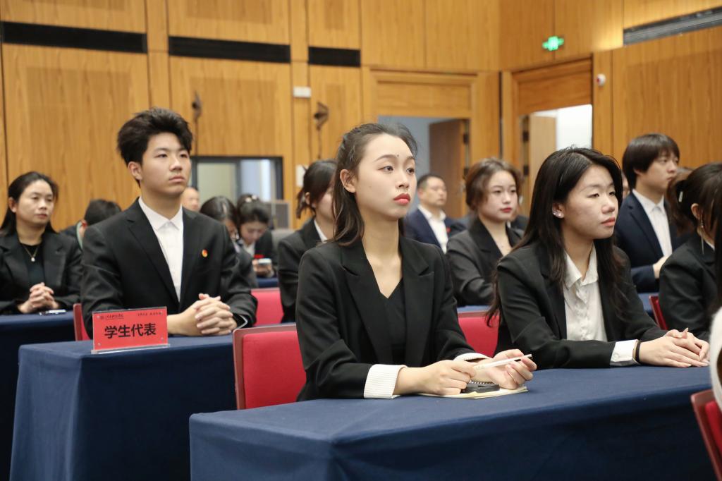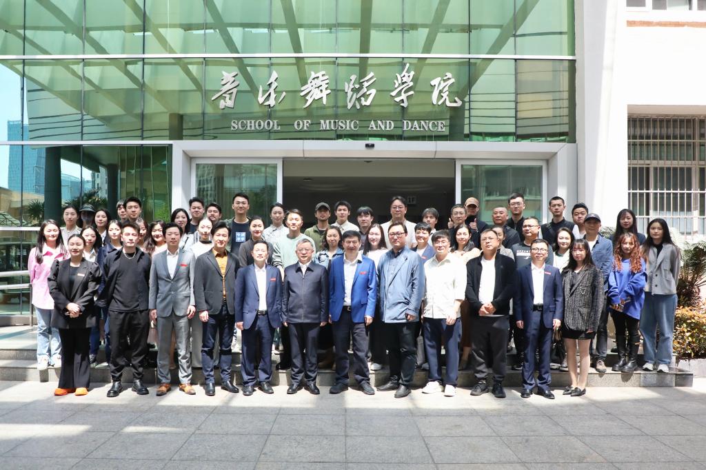 江西省歌舞剧院院长杜欢、党总支书记付翔、副院长肖赣生、院长助理李有来,我校副校长林素君、陈辉、李玮等在家校领导,江西省歌舞剧院艺术创作部、舞剧团、合唱团、民乐团、舞美制作中心等部门负责人和部分演员和职工代表,我校相关职能部门负责人及各学院院长、党委书记、教学副院长等一同见证演艺与创意产业学院的诞生。