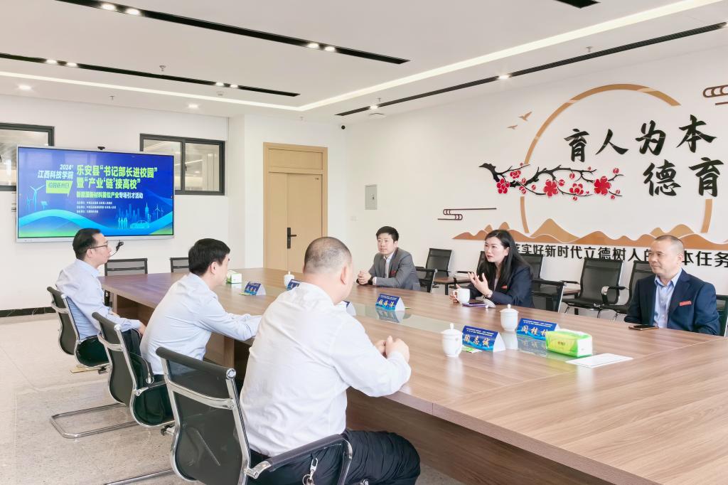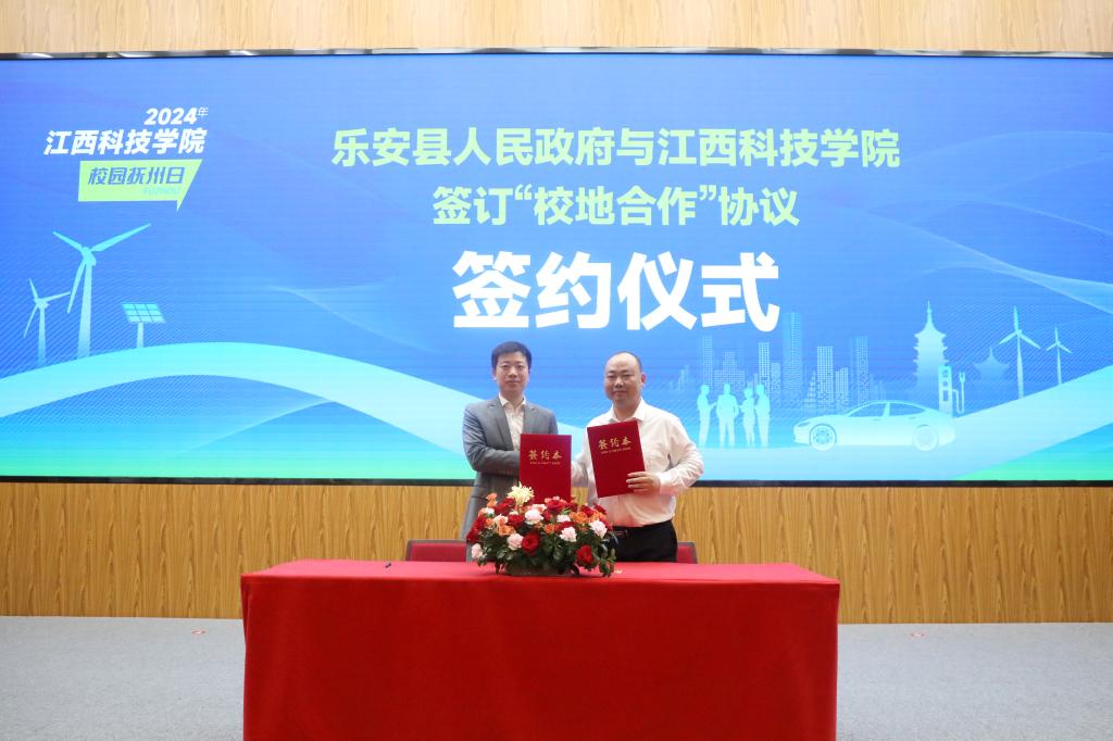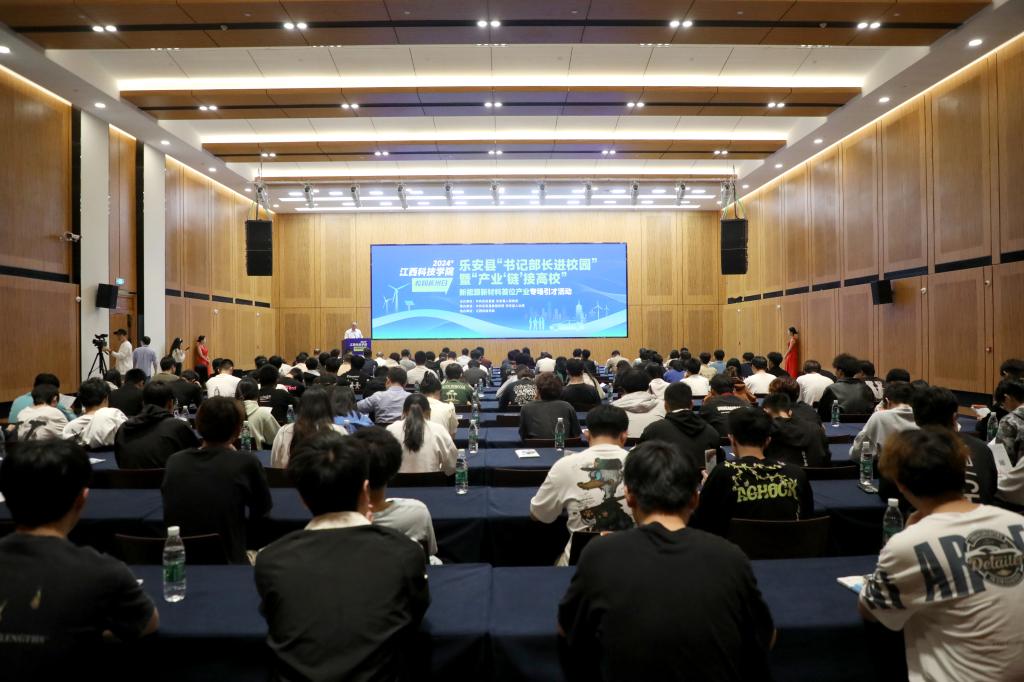 活动现场,与会人员一同观看乐安县和江西科技学院宣传片,陶志诚副县长推介乐安县“新能源新材料”产业发展情况。张海涛校长、艾志峰书记、闵桂林副校长、李玮副校长、陶志诚副县长等与会领导嘉宾共同启动2024年江西科技学院“校园抚州日”——乐安县“书记部长进校园”暨“产业‘链’接高校”新能源新材料首位产业专场引才活动。乐安县人民政府与我校签订“校地合作”协议,并举行乐安县(江西科技学院)人才培养基地授牌仪式。