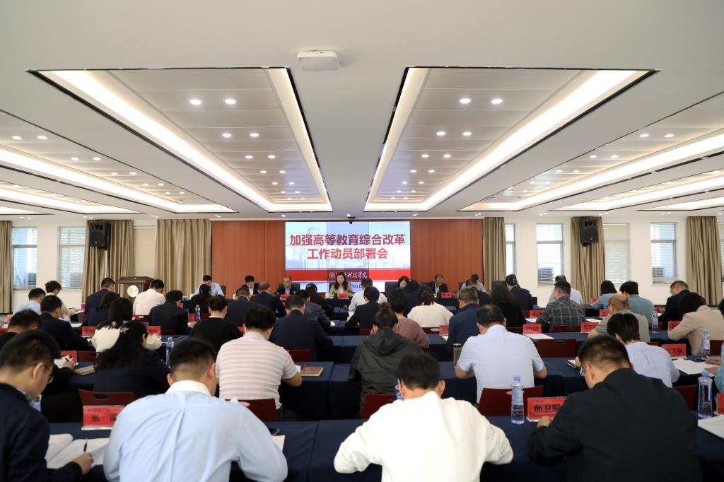 张海涛校长在会上传达了全省高等教育综合改革工作动员部署会议精神。她指出,推进高校分类管理改革,实施高等教育综合改革,是贯彻落实党中央、国务院决策部署,努力办好人民满意的教育的迫切要求,是大力推进教育强省建设的重要举措,省委、省政府高度重视,召开专题会议研究部署。大家要深化思想认识,提高政治站位,积极主动作为,优质高效完成各项目标任务;要压紧压实工作责任,确报每项工作都有人抓、有人促、有人干;要坚持系统观念,强化部门协作配合,凝聚改革共识,形成工作合力。