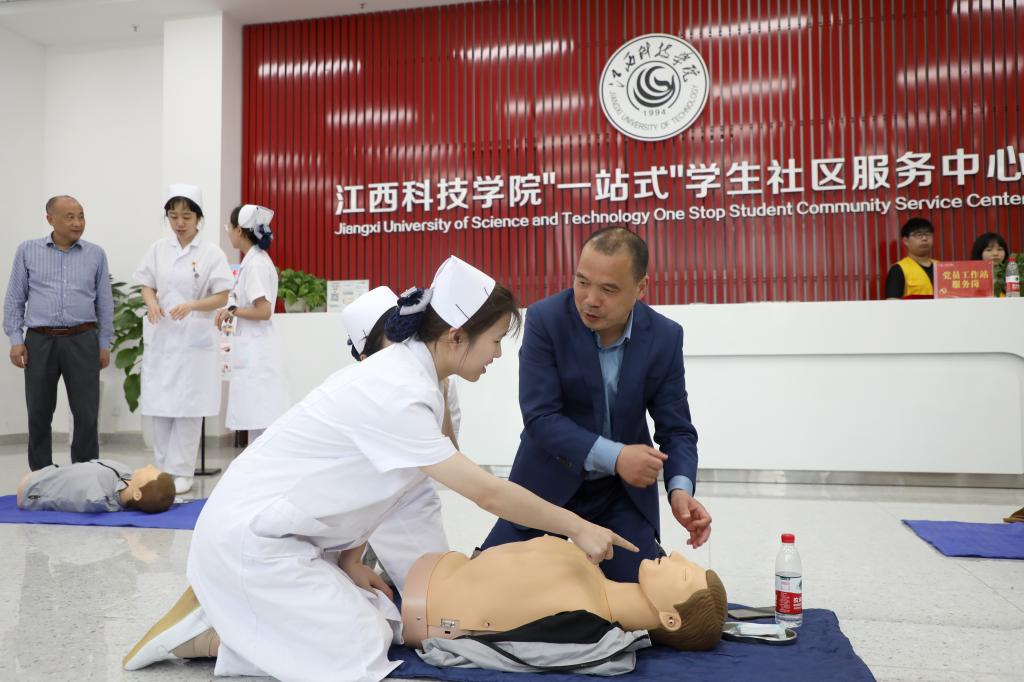江科网讯(记者 何强江)4月24日下午,我校在北校区“一站式”学生社区服务中心举行“急救科普知识进社区”启动仪式。校党委副书记、副校长闵桂林,副校长周冰冰出席仪式,并向“急救科普讲师团”授牌及颁发聘书。宣传部、学工处、保卫处、心理健康中心等职能部门负责人,各学院党委书记、专职副书记、学工秘书,各学生社区主任、全体公寓辅导员参加仪式。
