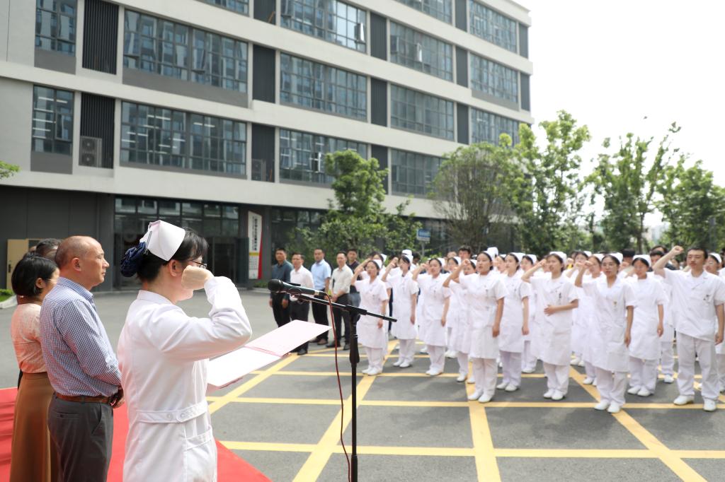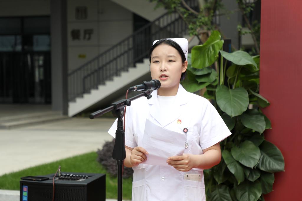 仪式上,医学院院长刘燕玲介绍急救科普进社区的背景,讲师团代表作表态发言,讲师团在谭美春老师的带领下重温南丁格尔誓言。