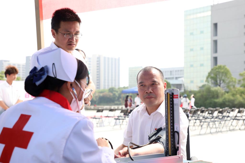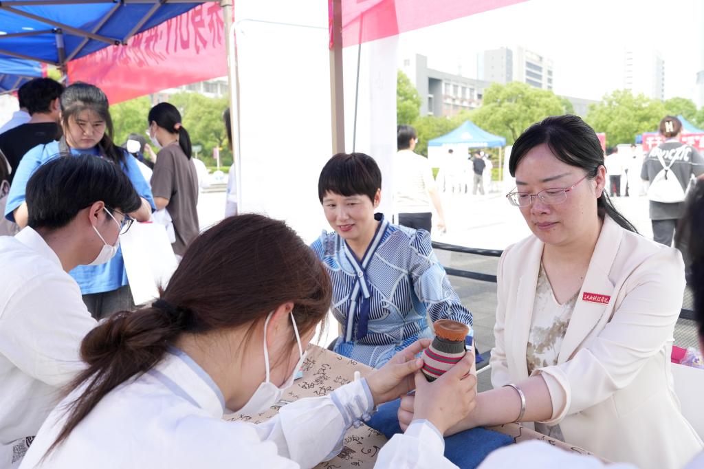 开幕式后,闵桂林副校长、夏拥华副书记等也饶有兴致地在互动区测量血糖血压、体验艾灸等,对同学们扎实的理论功底以及娴熟的手法技巧予以赞赏。