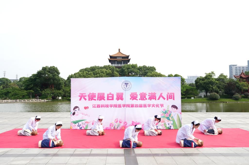 江科网讯(记者 何强江 实习记者 杨光)一个微笑,一份信念;一腔热情,一份责任。为弘扬南丁格尔精神,5月10日,在第113个国际护士节来临之际,医学院举办第四届医学文化节。校党委副书记、副校长闵桂林,校党委副书记夏拥华,组织部、宣传部、统战部、学工处、学生资助管理中心、心理健康中心等职能部门领导,以及医学院师生代表参加开幕式。